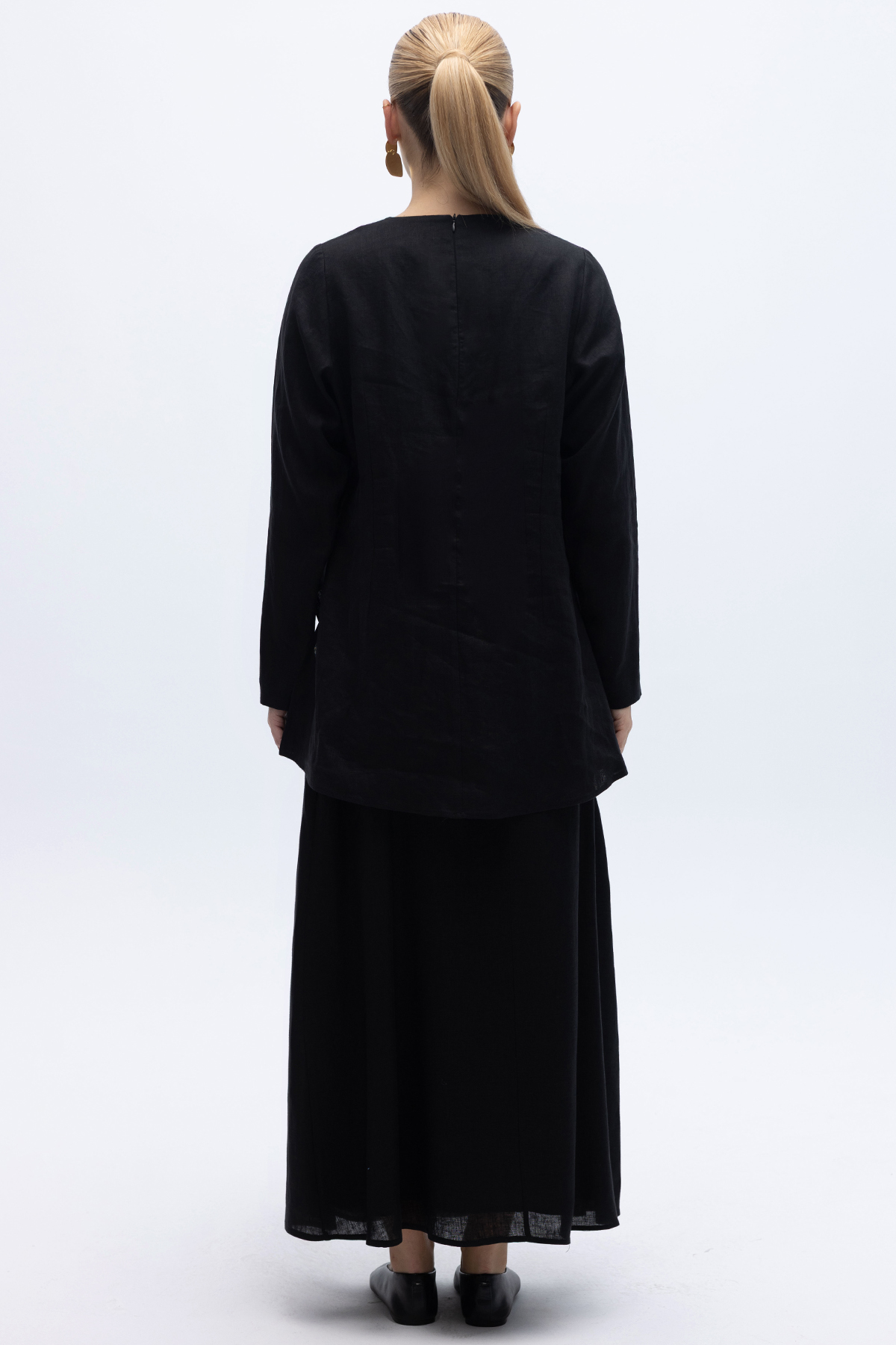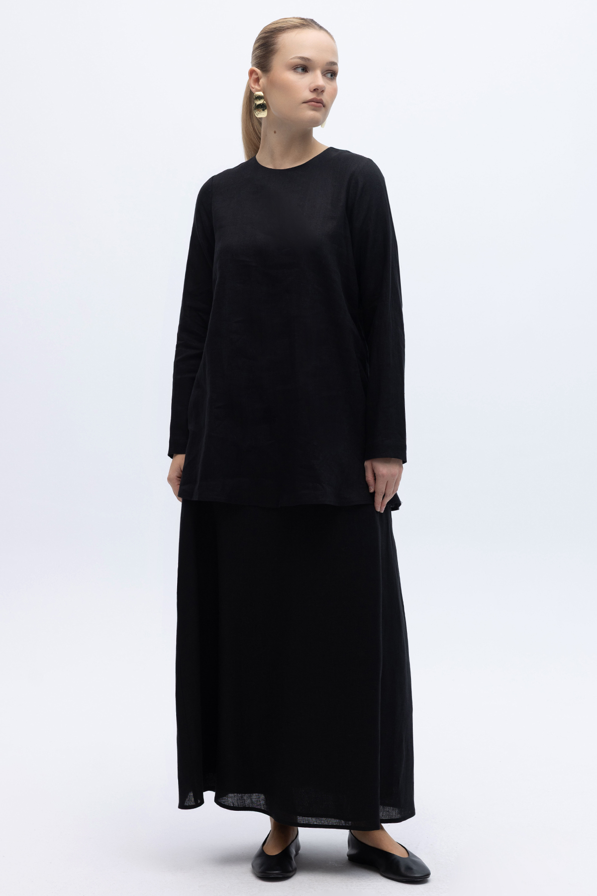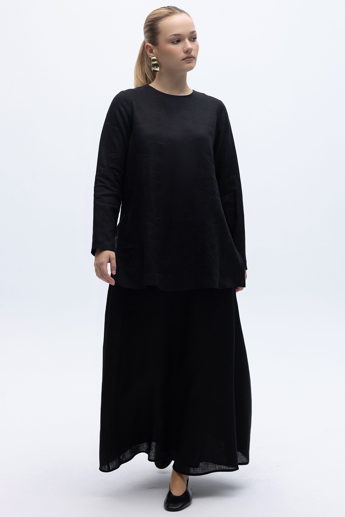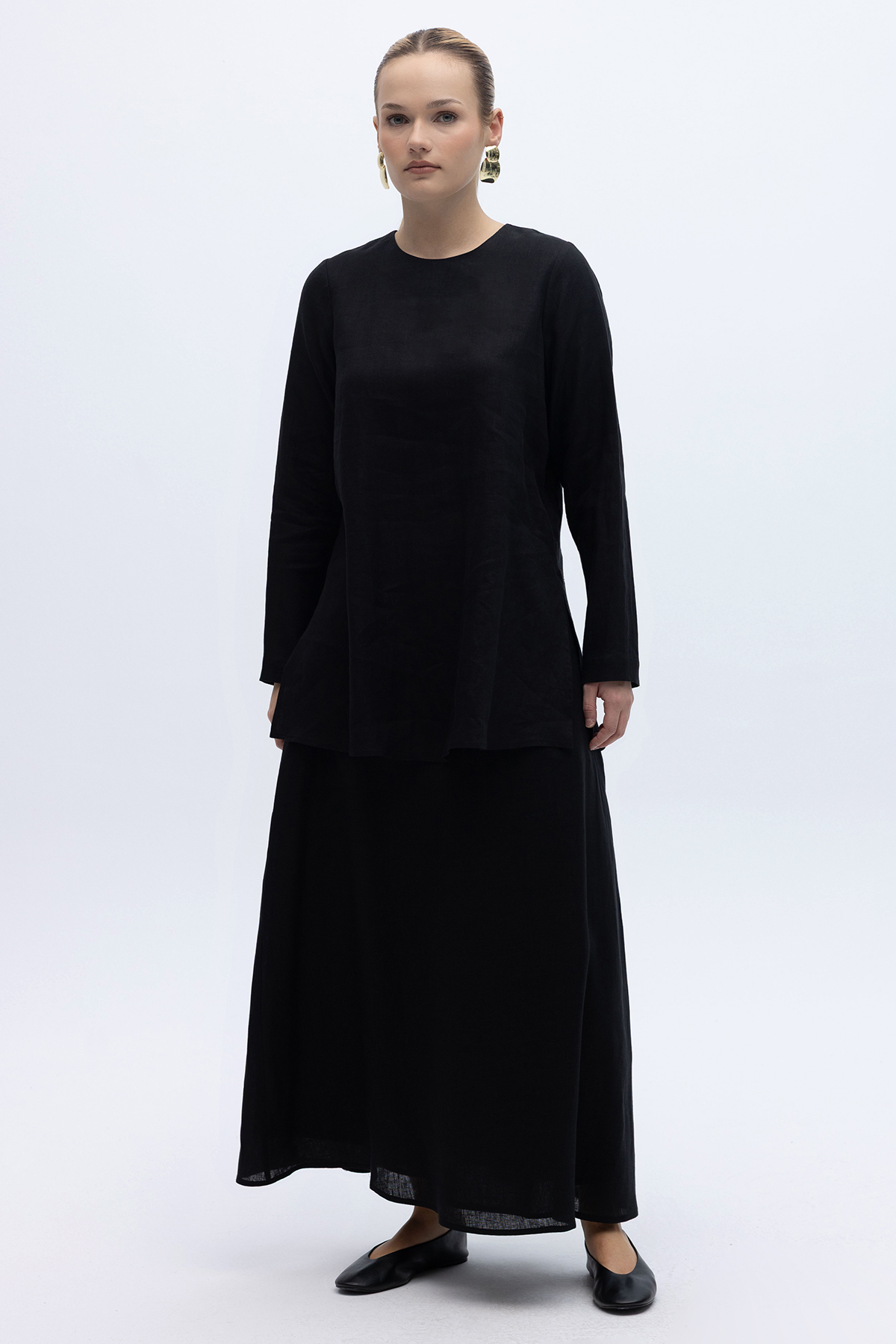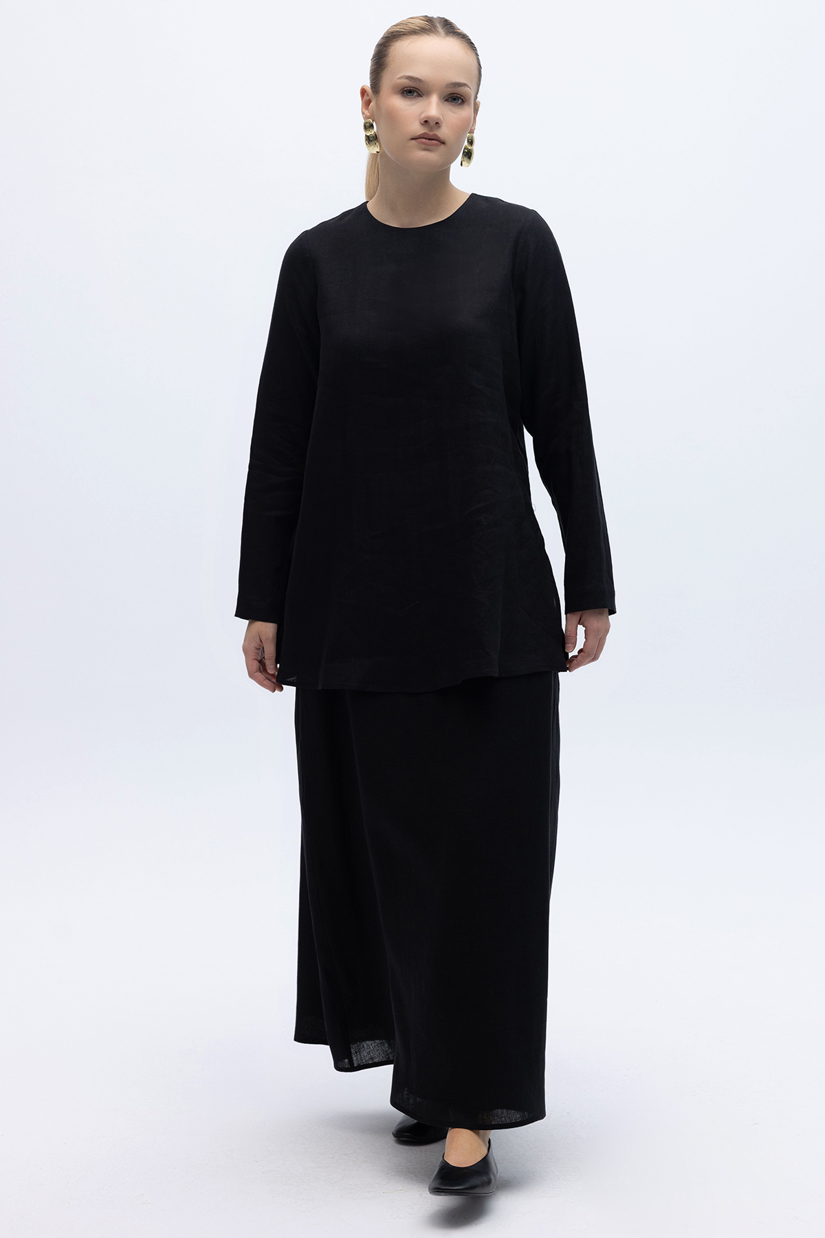 Uzun Kollu Düz Renk Keten Tunik Cherry