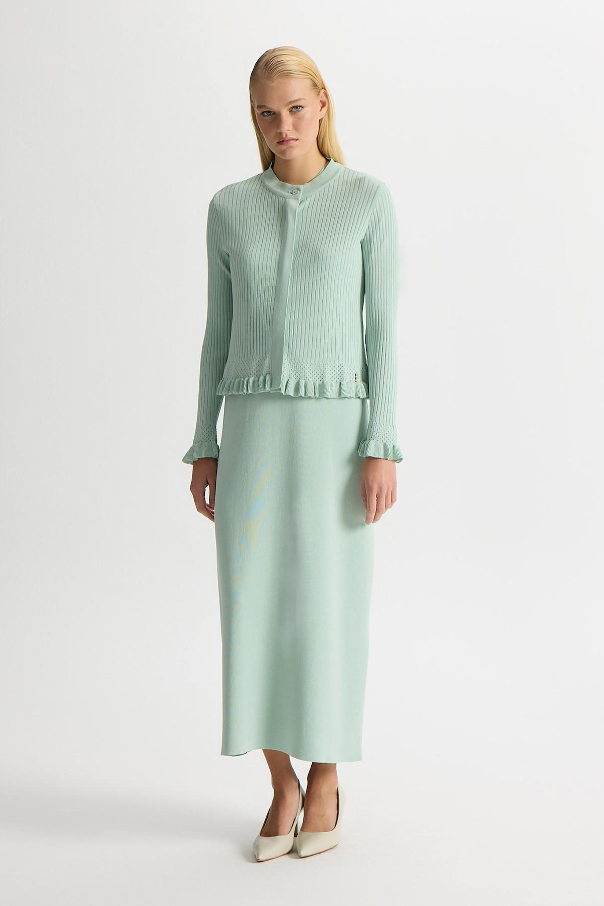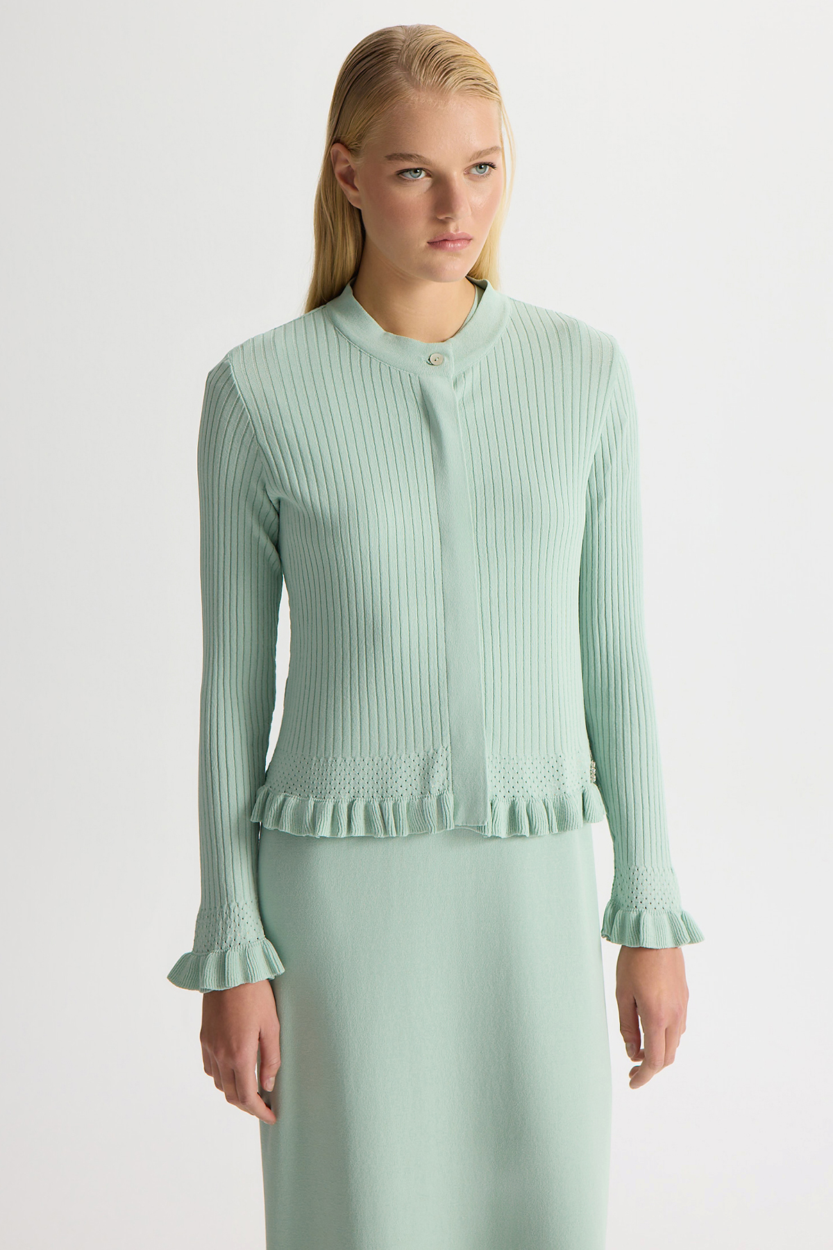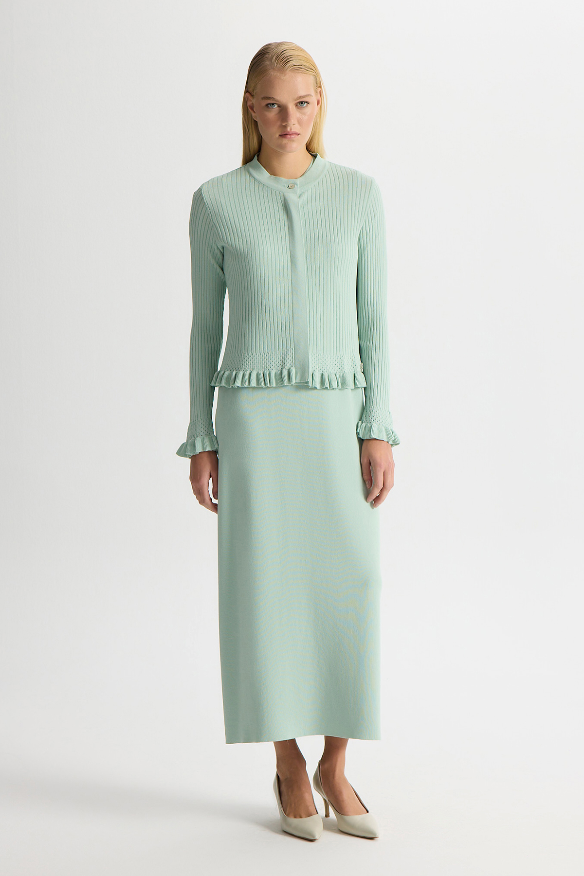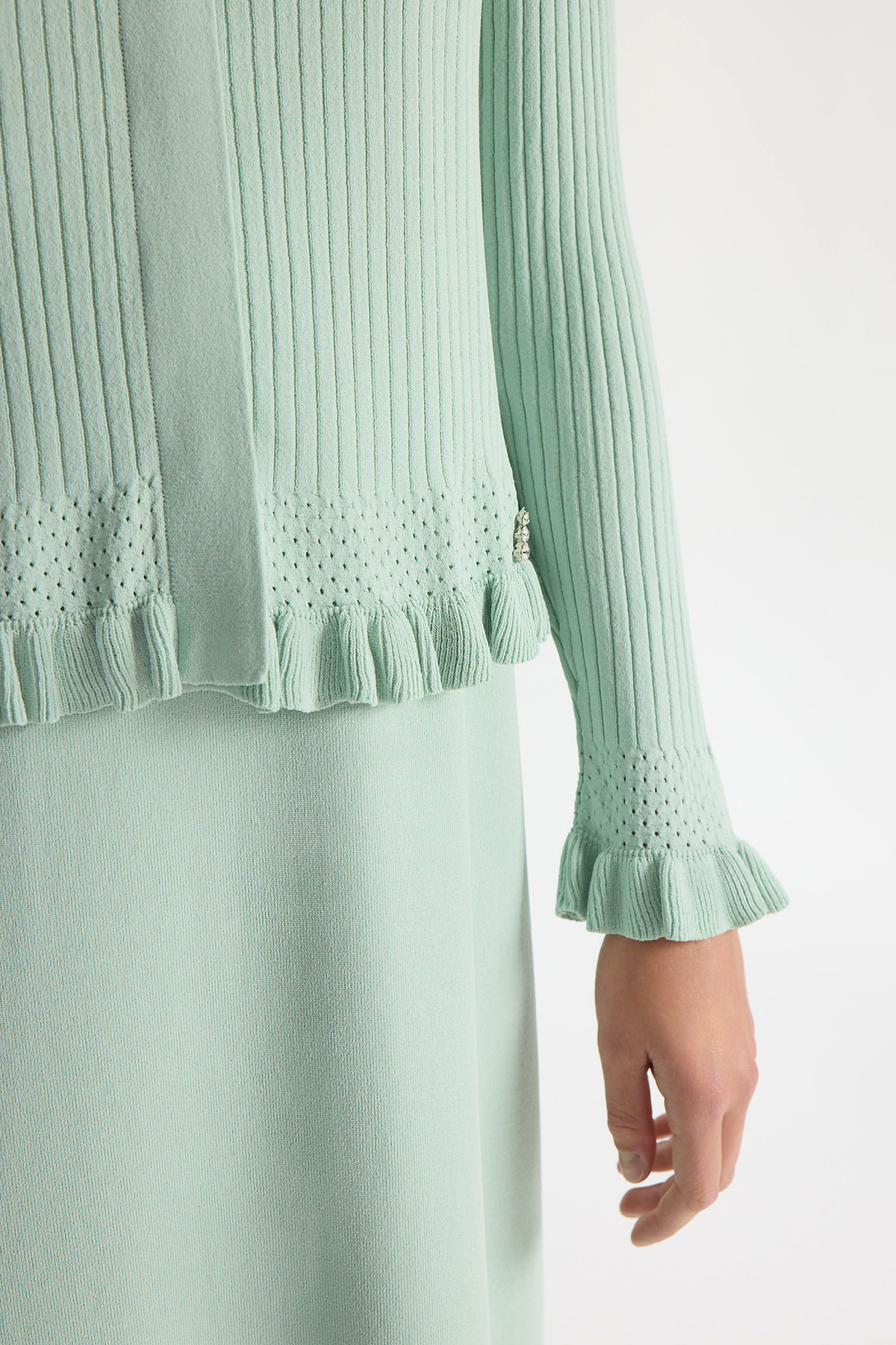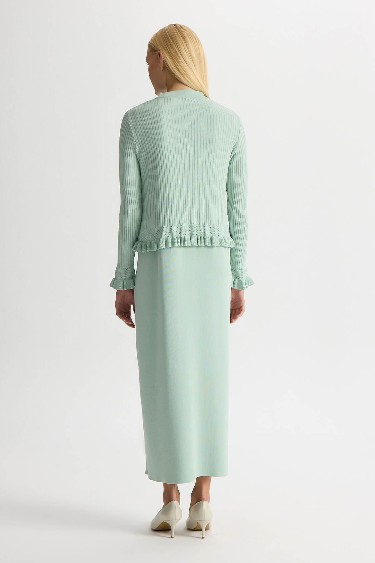 Ajur Detaylı Hırka Elbise Takım Yeşil