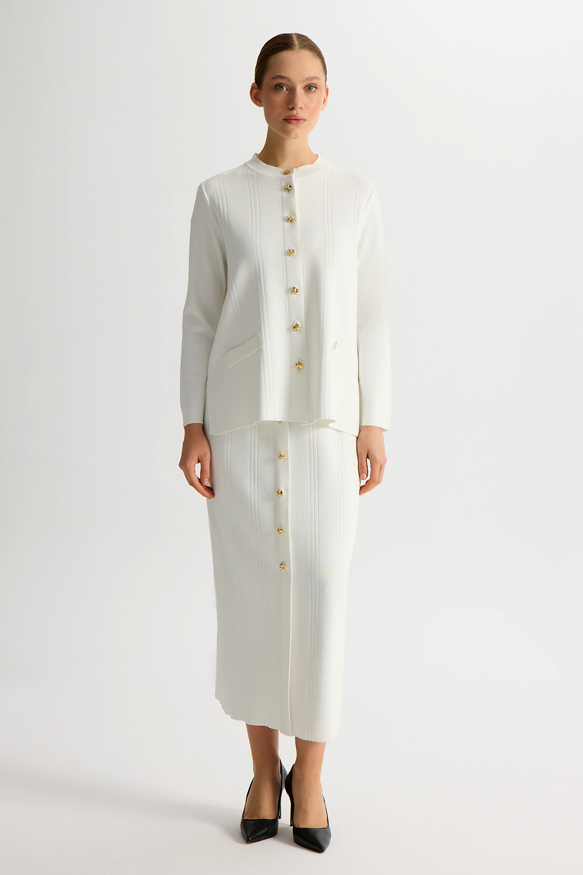 Knitted Pencil Skirt with Accessory Details