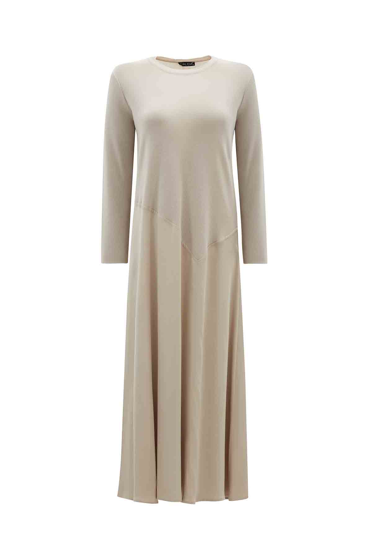 Asimetrik kesim triko cupro taş rengi elbise, modern kesimi ve zarif tonuyla stil sahibi kadınların favorisi olacak. Cupro kumaşın dökümlü yapısı ve triko detayların bütünlüğü, sofistike bir görünüm sunar. Günlük şıklıkta ya da özel davetlerde zarif bir duruş sergilemek için ideal bir seçimdir. Miss Dalida’nın özgün dokunuşuyla her mevsime uyum sağlar.