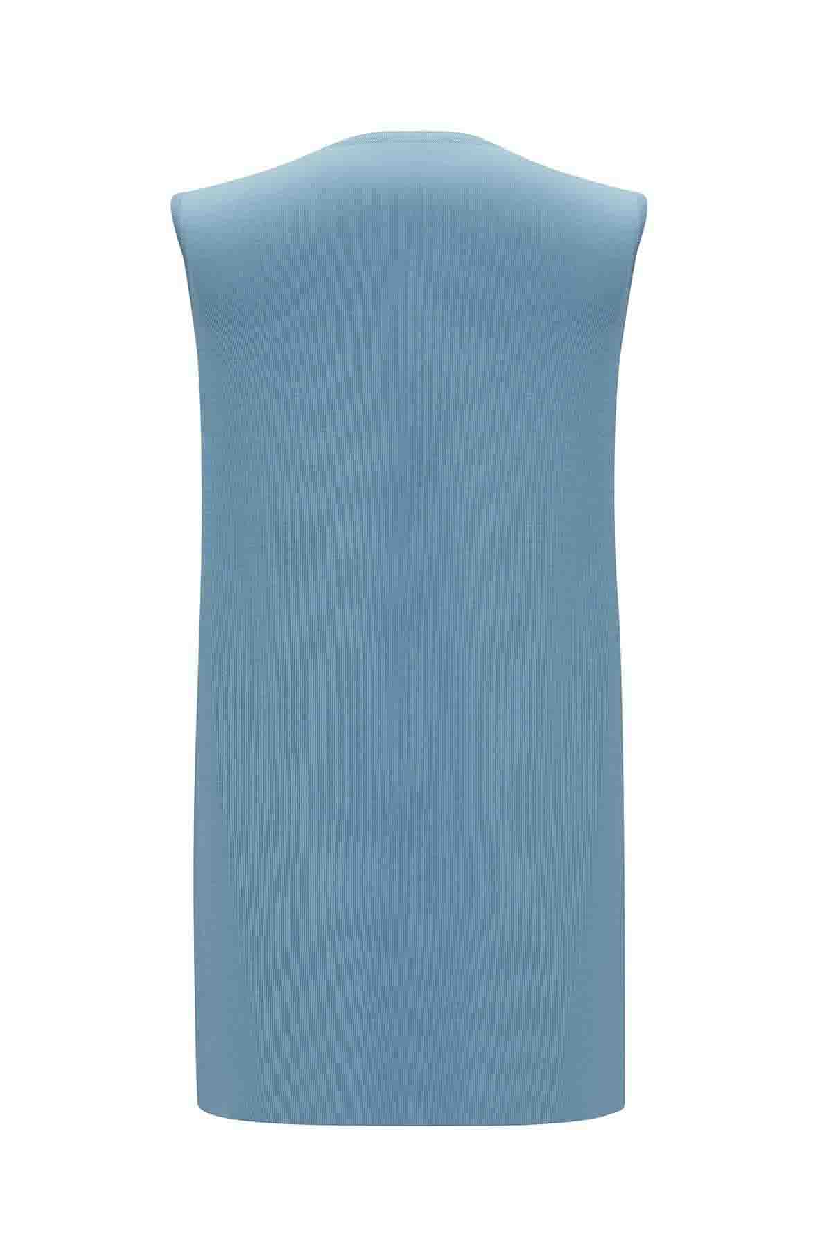 The basic sleeveless knitted blue tunic brings freshness and elegance together. Made from breathable knit fabric, it provides lasting comfort during warm days. Its calm blue tone and minimalist design make it an essential piece for effortless style a refined addition to Miss Dalida’s timeless collection.