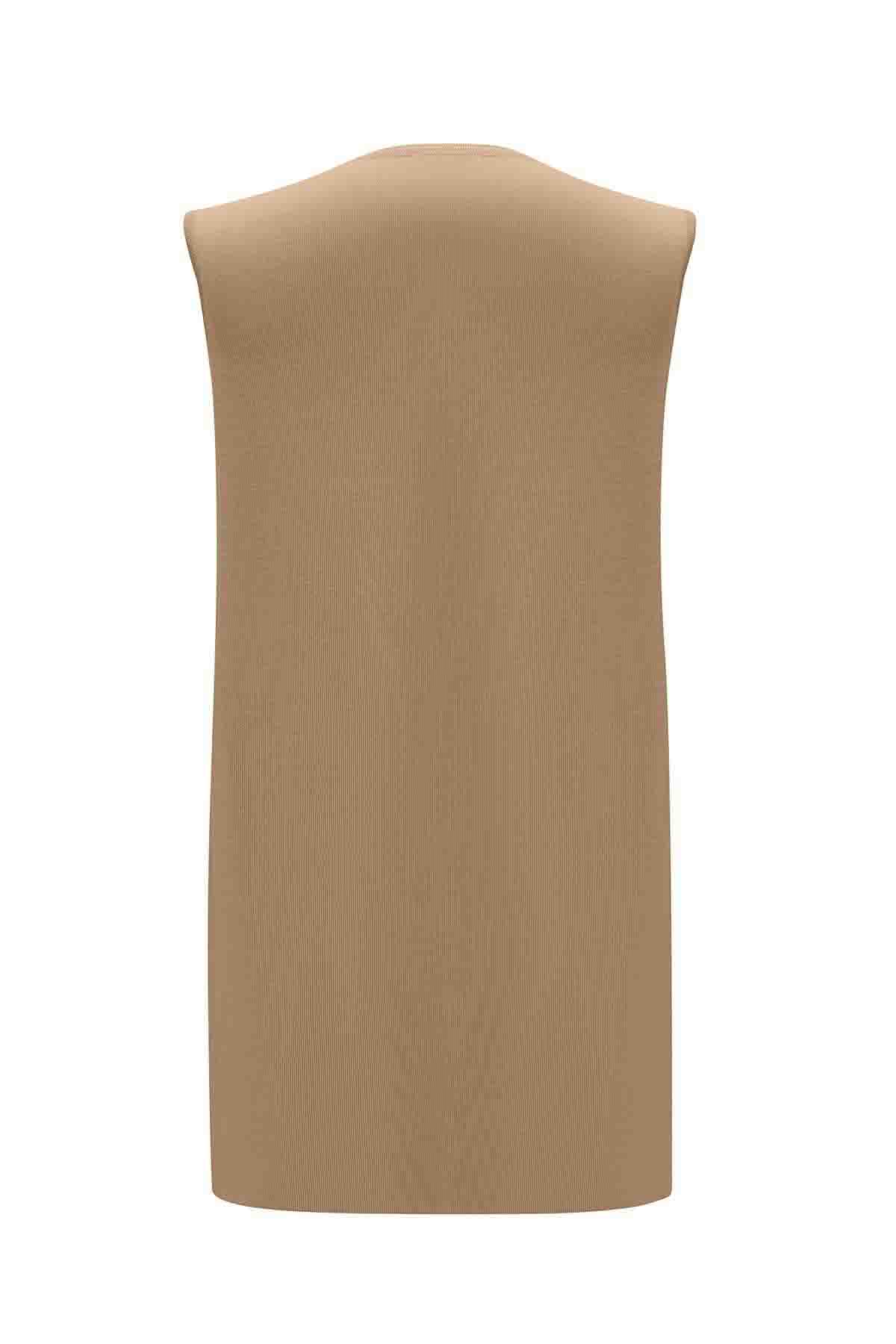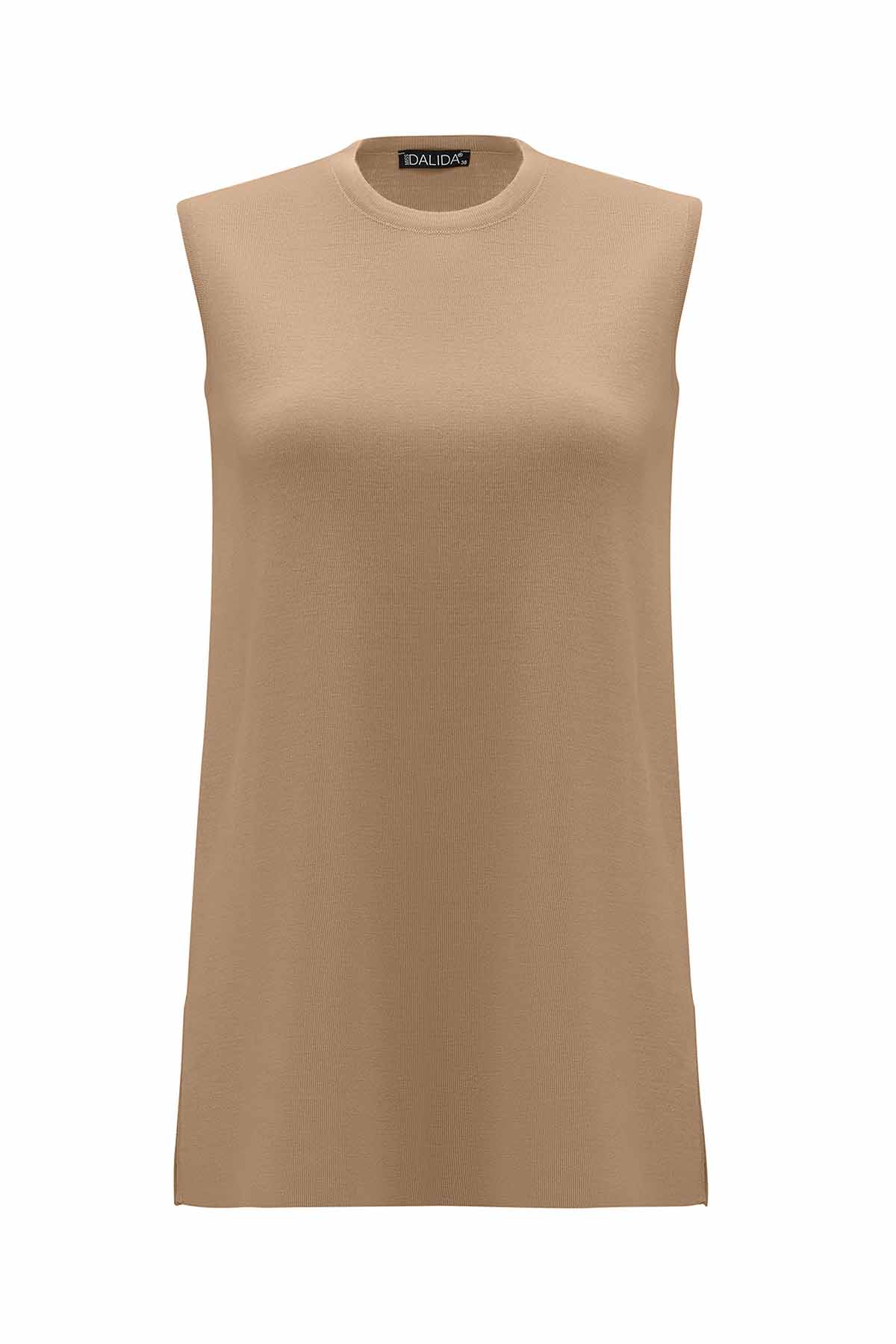 The basic sleeveless knitted camel tunic embodies refined simplicity with its warm neutral tone. Crafted from soft, breathable knit fabric, it offers a relaxed yet elegant silhouette. The sleeveless design and classic camel color make it a versatile choice for everyday or city wear a chic and timeless piece from Miss Dalida’s collection.