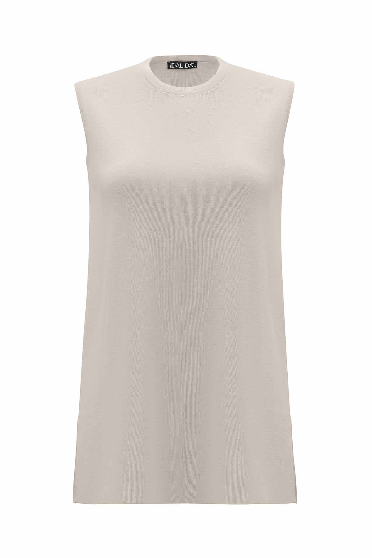 The basic sleeveless knitted stone tunic is a timeless essential that combines natural elegance with modern simplicity. Crafted from lightweight knit fabric, it ensures comfort and breathability all day long. The soft stone shade adds sophistication to any outfit a chic, versatile piece from Miss Dalida’s elegant collection.