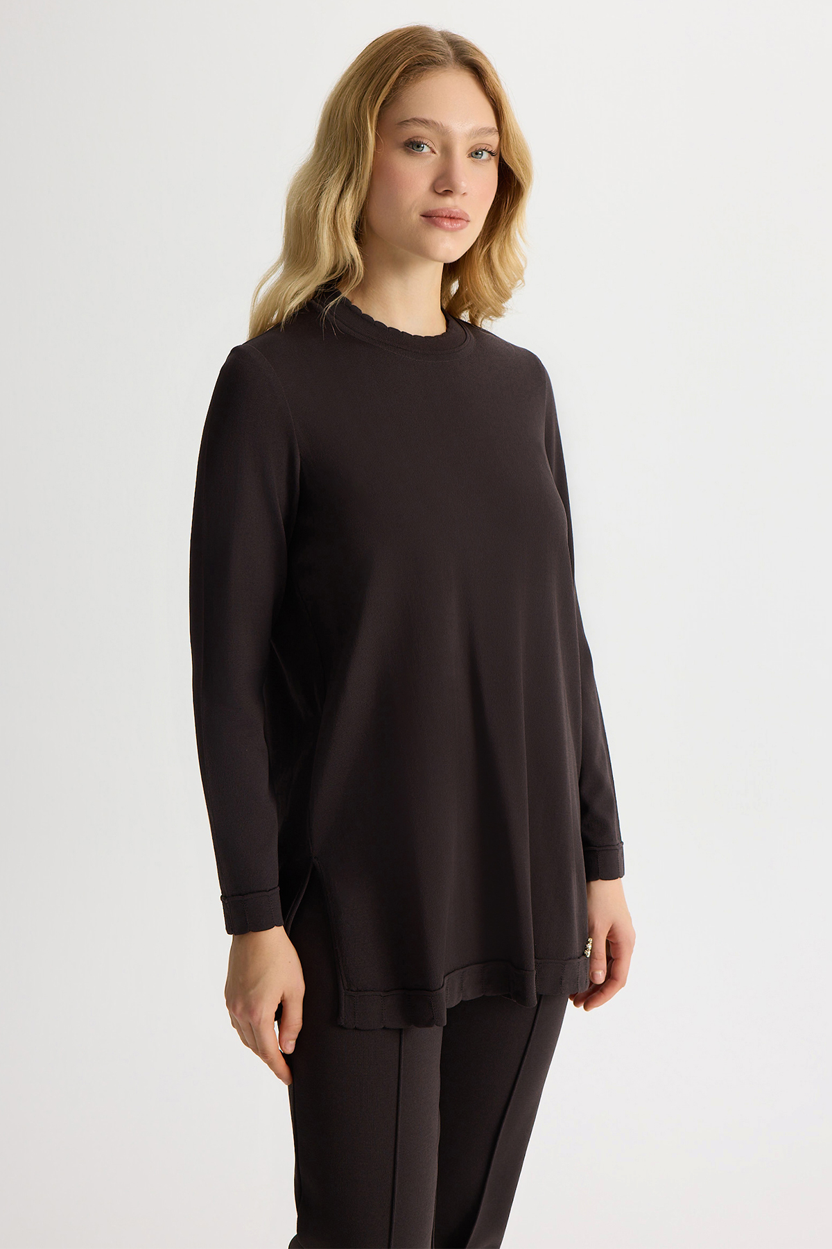 Knit Tunic with Front Slit and Tiktok Detail