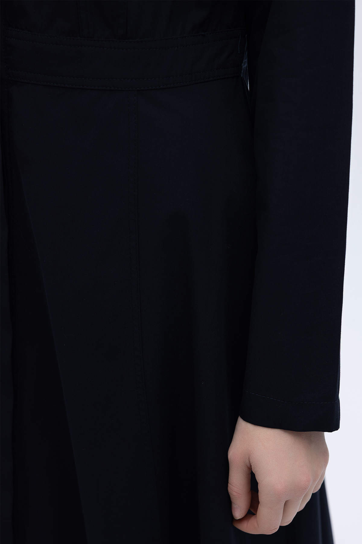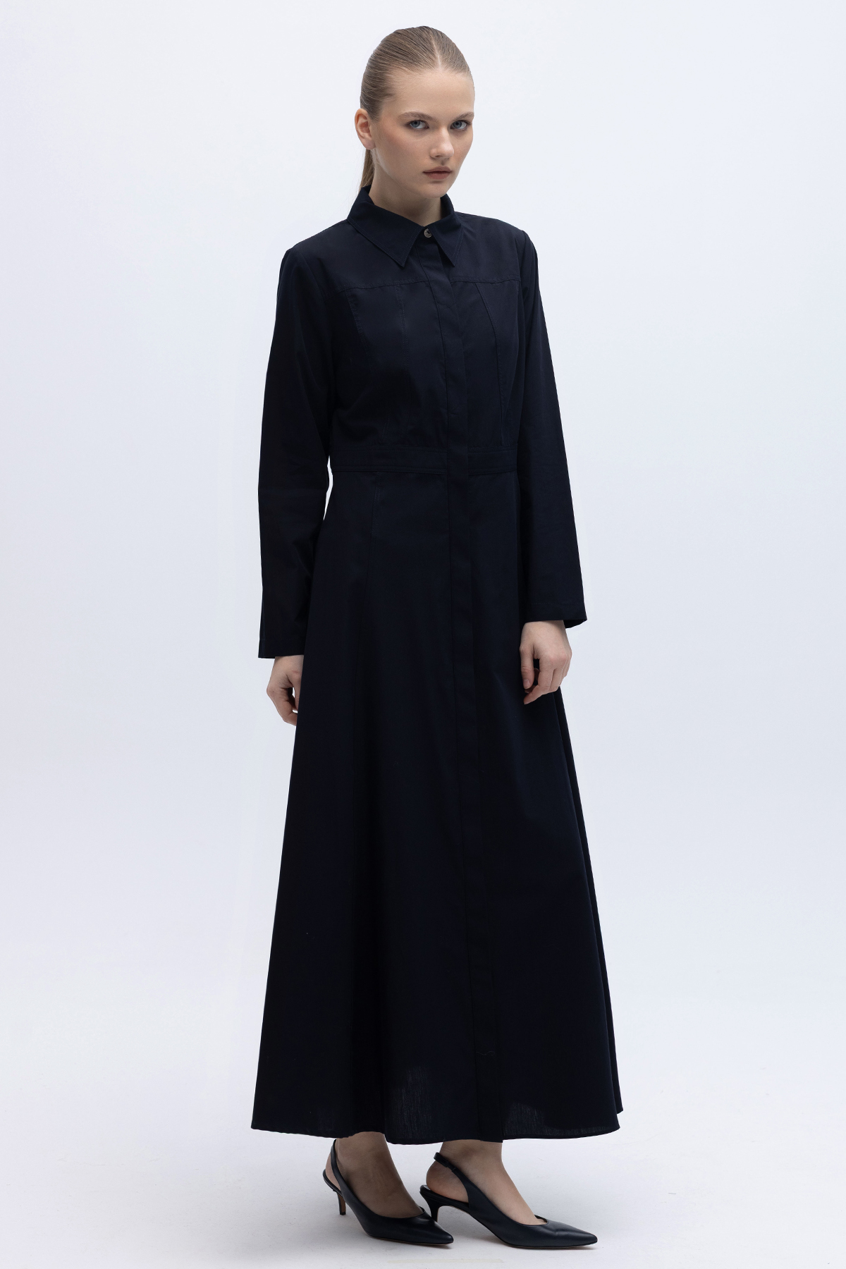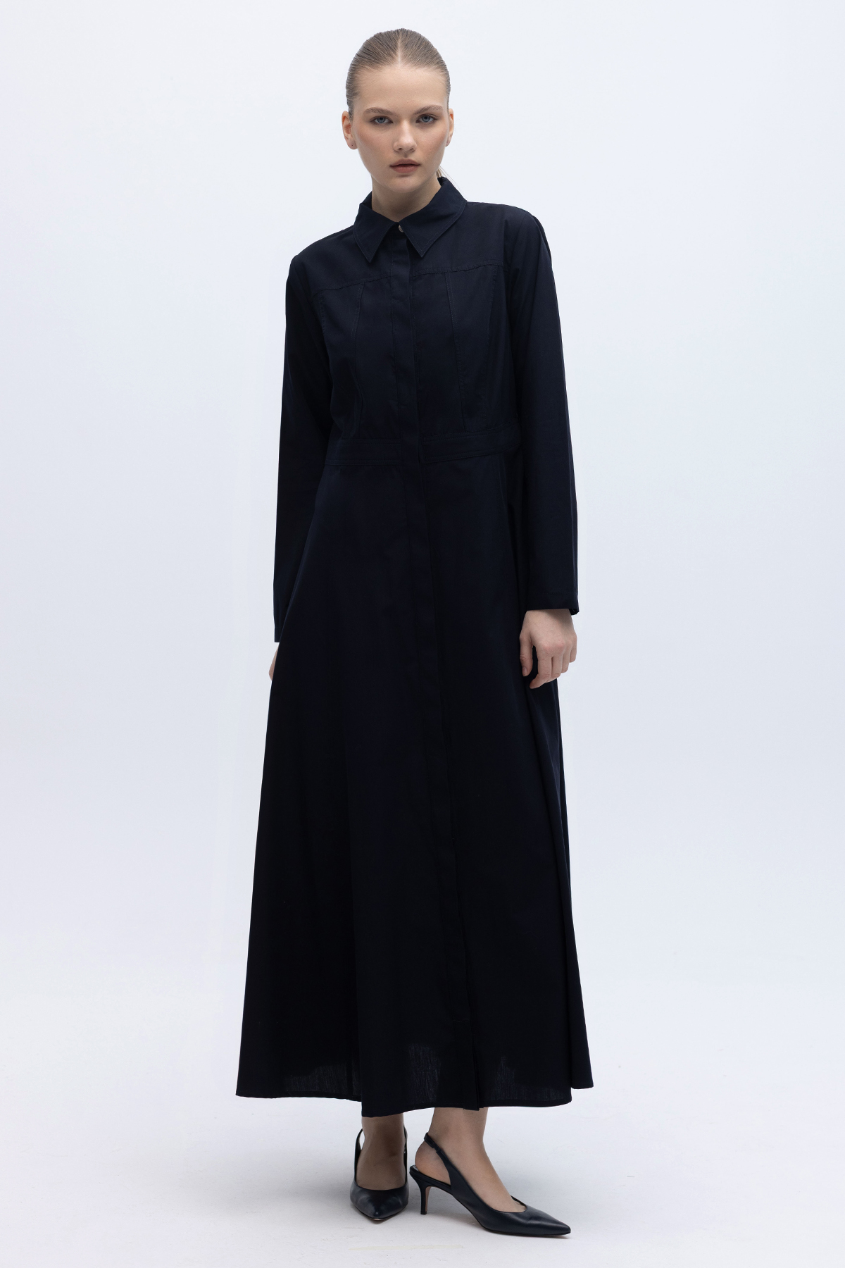 Belden Oturmalı Uzun Kollu Poplin Elbise Lacivert