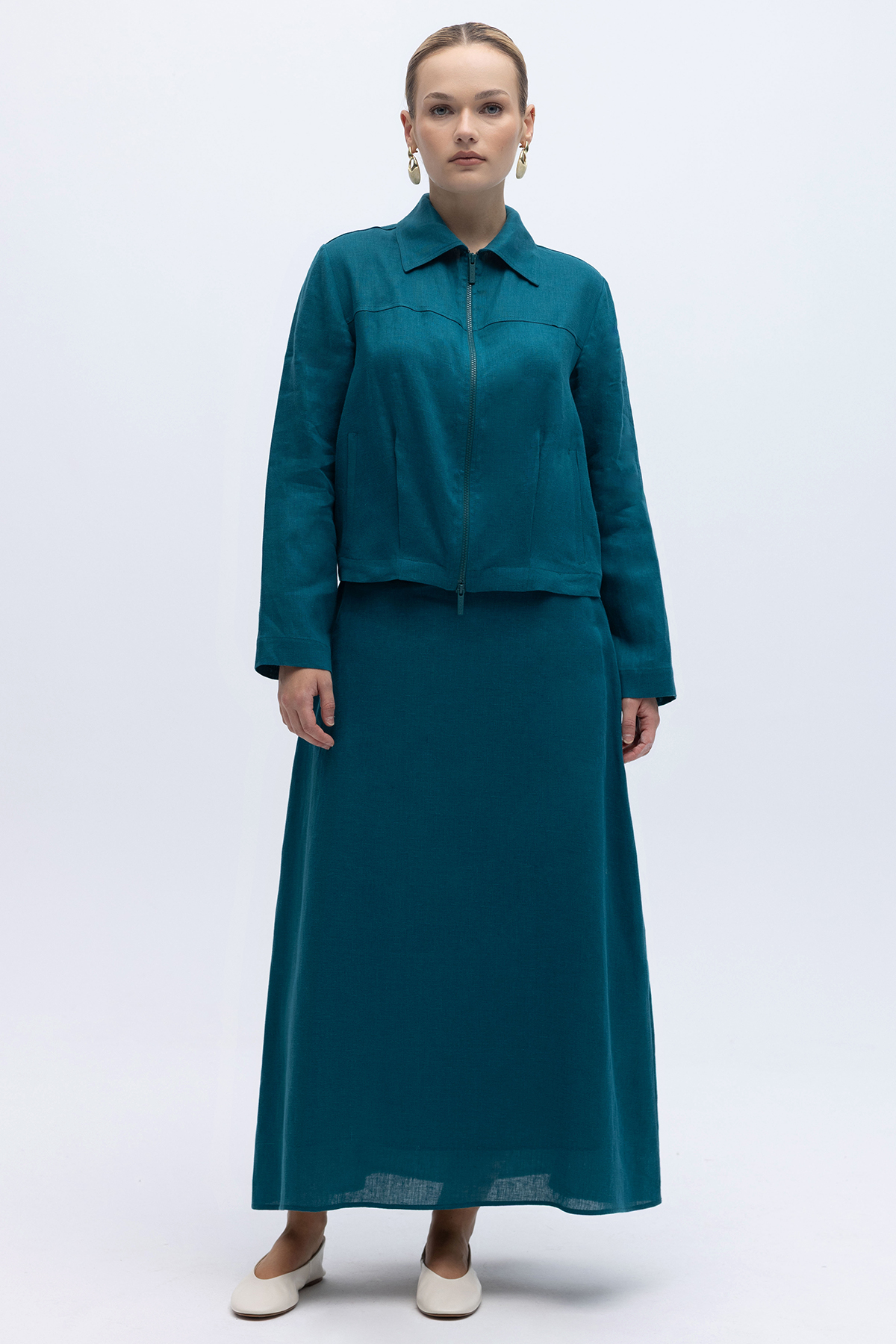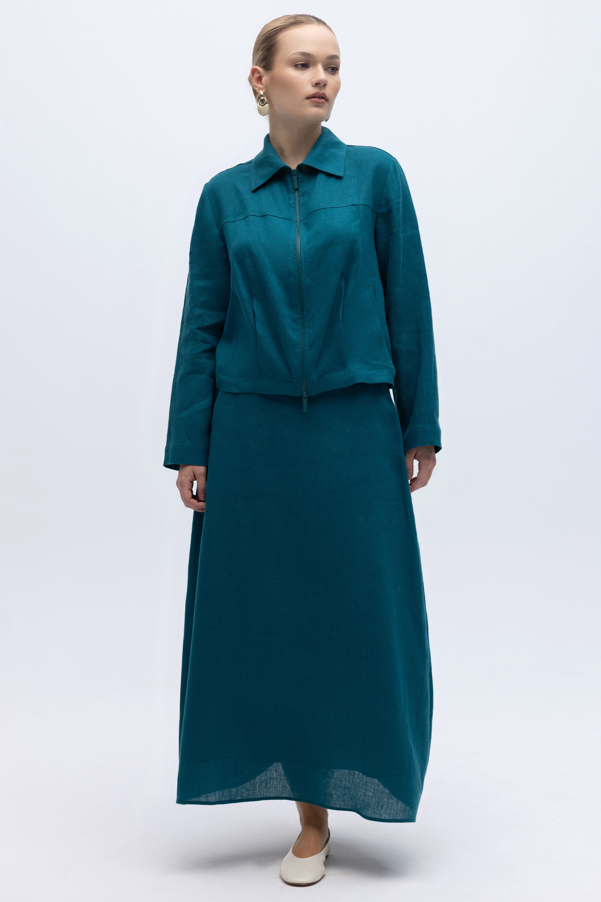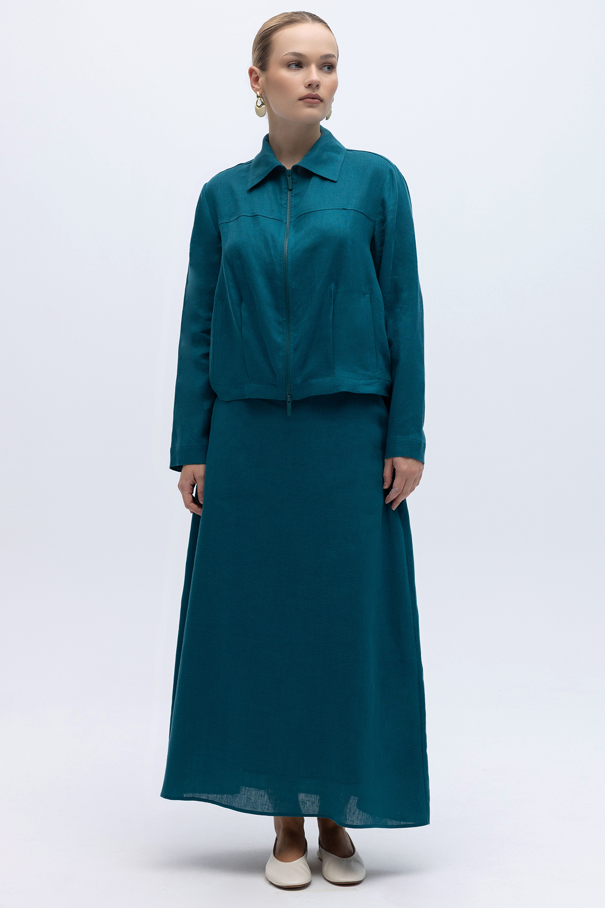 Beli Lastikli A Kesim Düz Renk Keten Etek North Sea