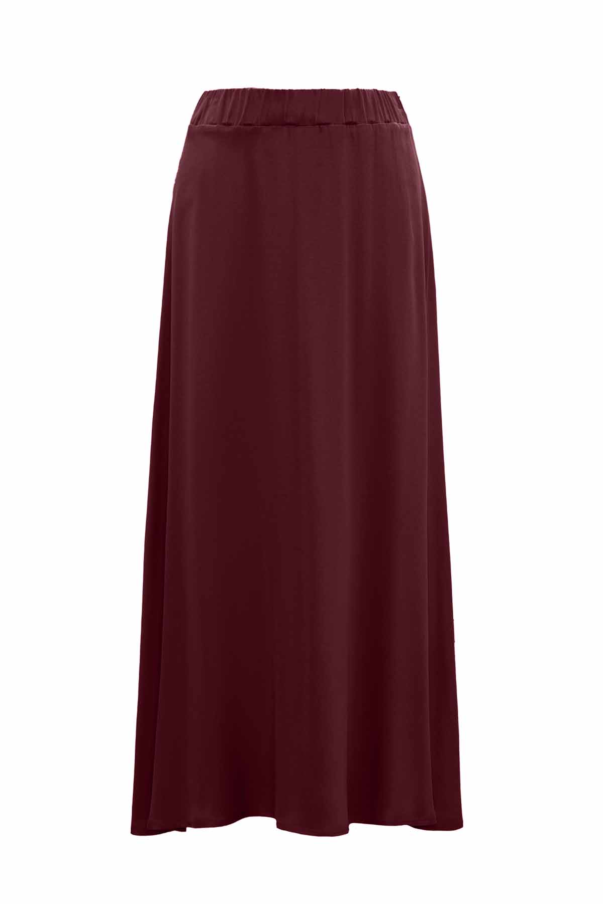 Beli lastikli cupro bordo etek, zarafeti ve konforu bir arada sunan modern bir tasarımdır. Akıcı cupro kumaşı sayesinde dökümlü bir duruş sağlarken, lastikli beliyle rahat bir kullanım sunar. Bordo tonunun güçlü ifadesi, hem gündüz hem akşam kombinlerinde şık bir alternatif oluşturur. Miss Dalida koleksiyonunun kadınsı ve zamansız parçalarından biridir.