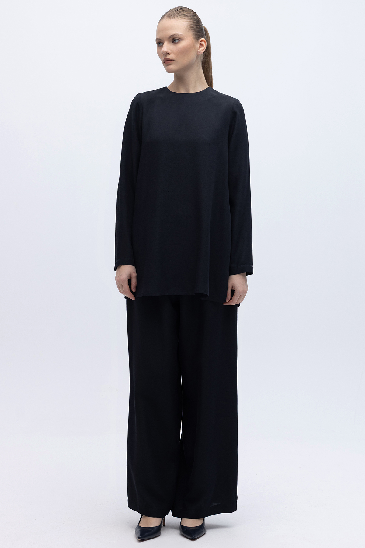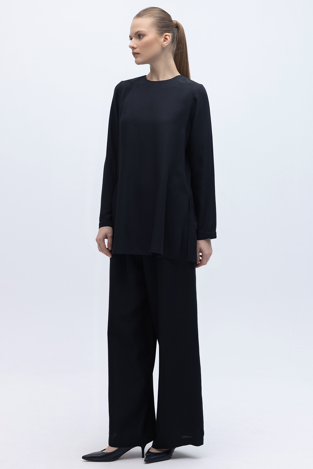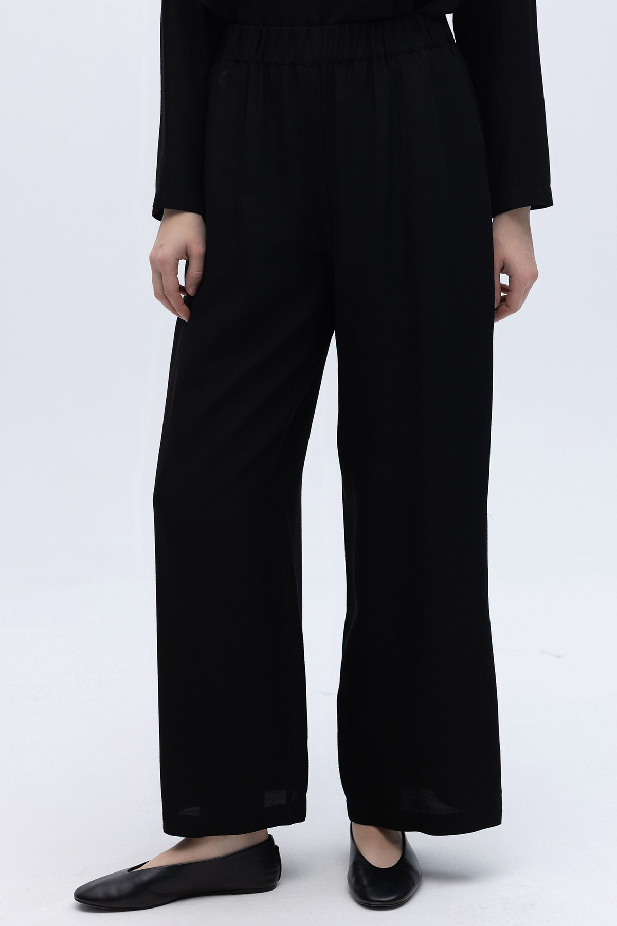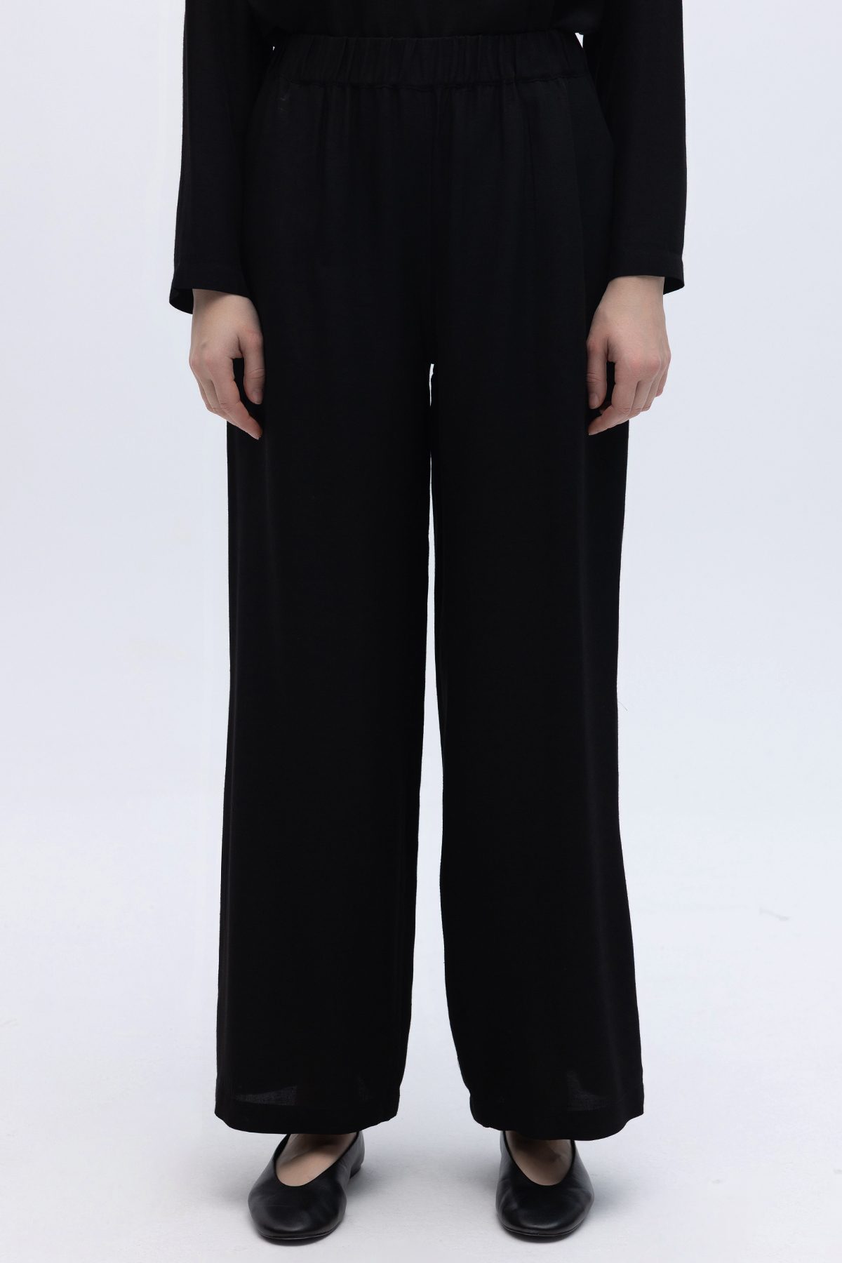 Beli Lastikli Keten Pantolon Siyah