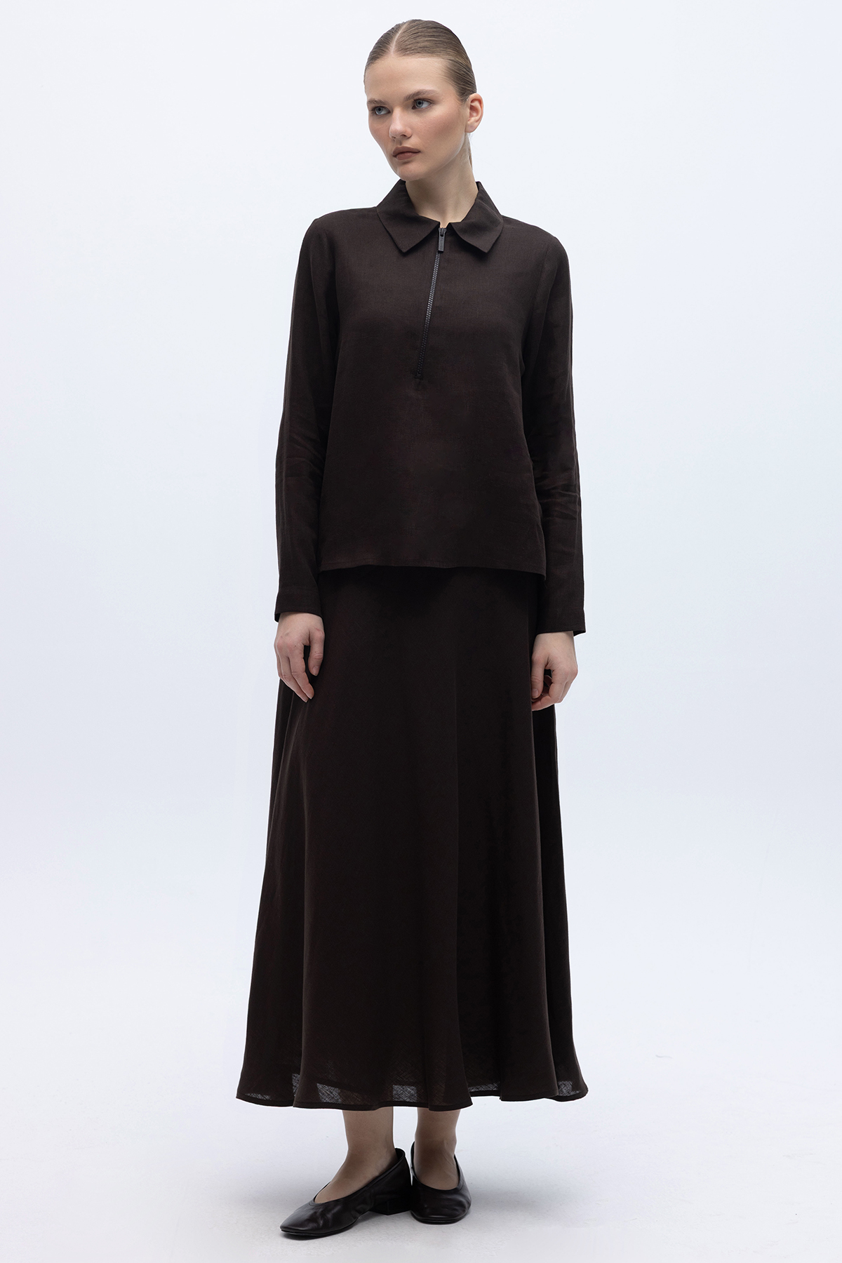 Beli Lastikli Rahat Kesim Keten Etek Kahverengi