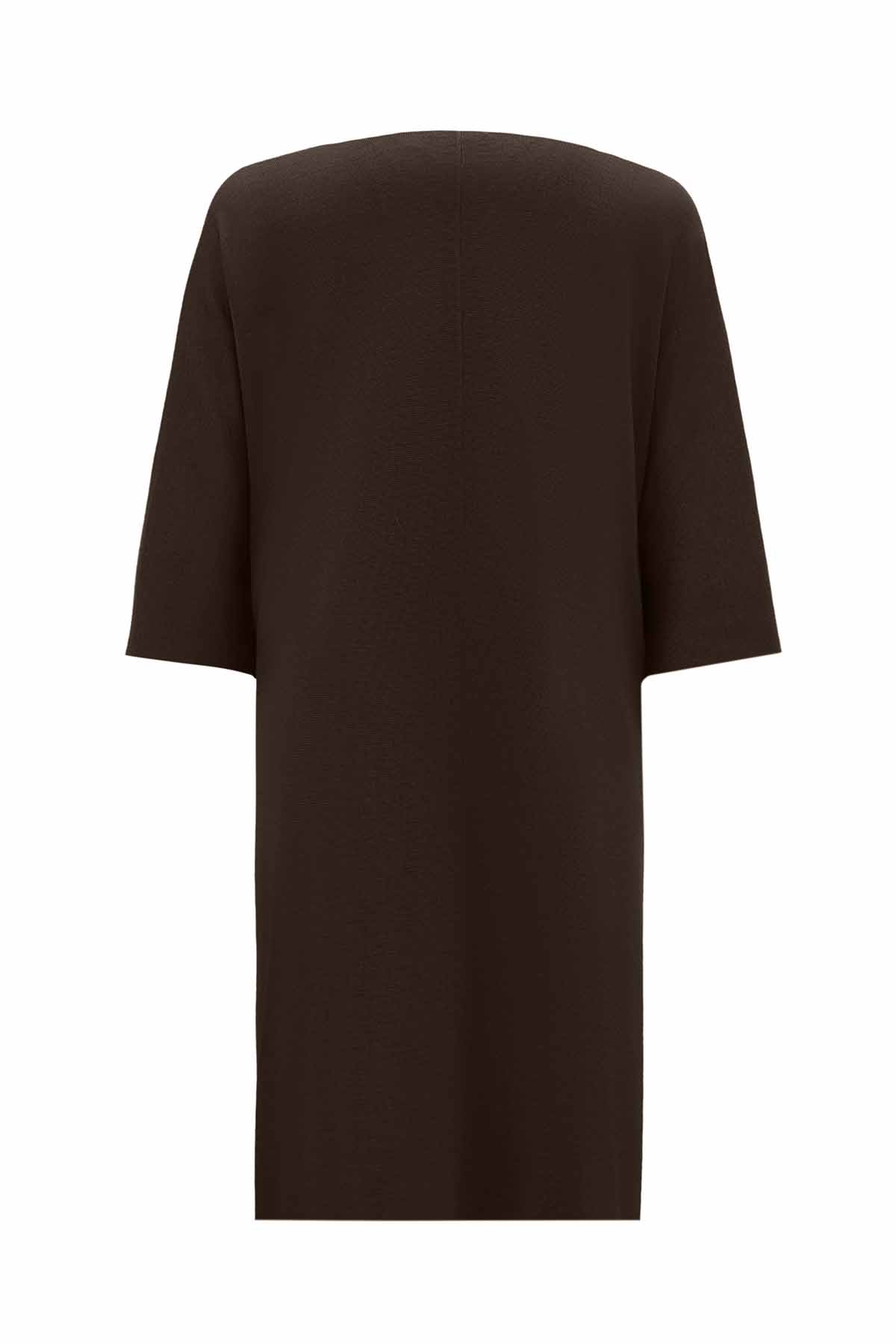 T25PF-6008 Yakası Büzgülü Cepli Triko Tunik BLACK