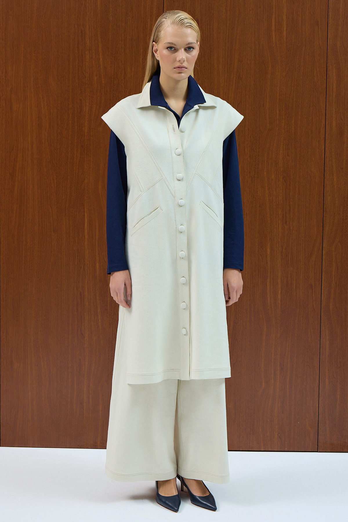 Bol Paça Basic Denim Pantolon Ekru