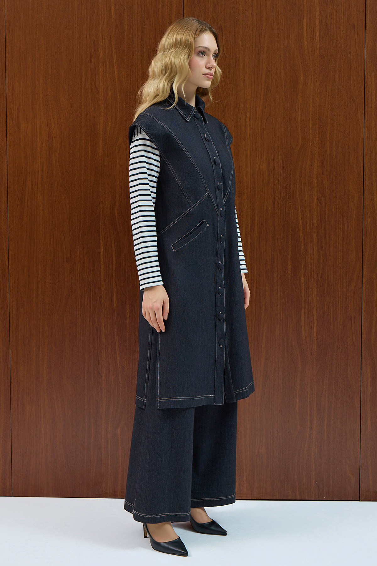 Wide Leg Basic Denim Trousers