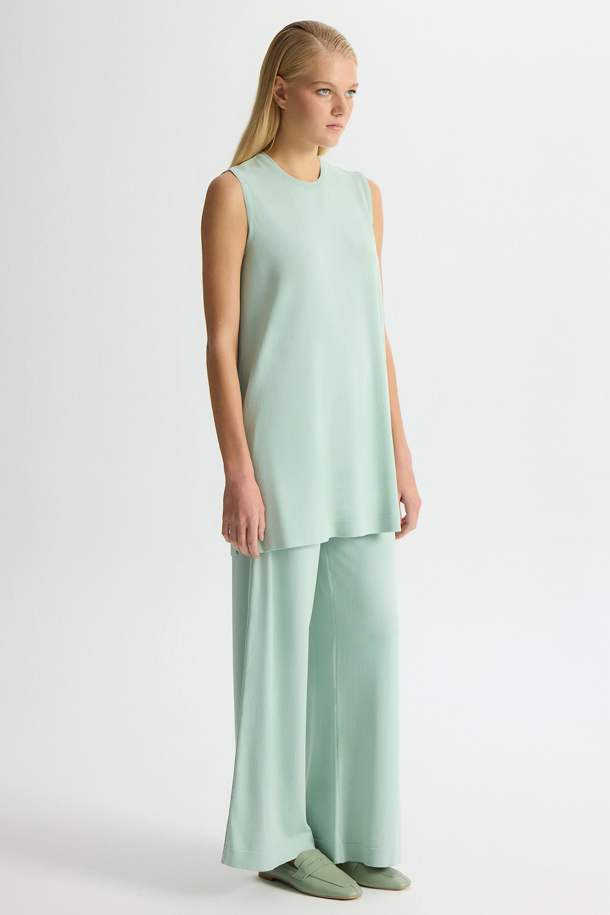 Bol Paça Basic Triko Pantolon Yeşil
