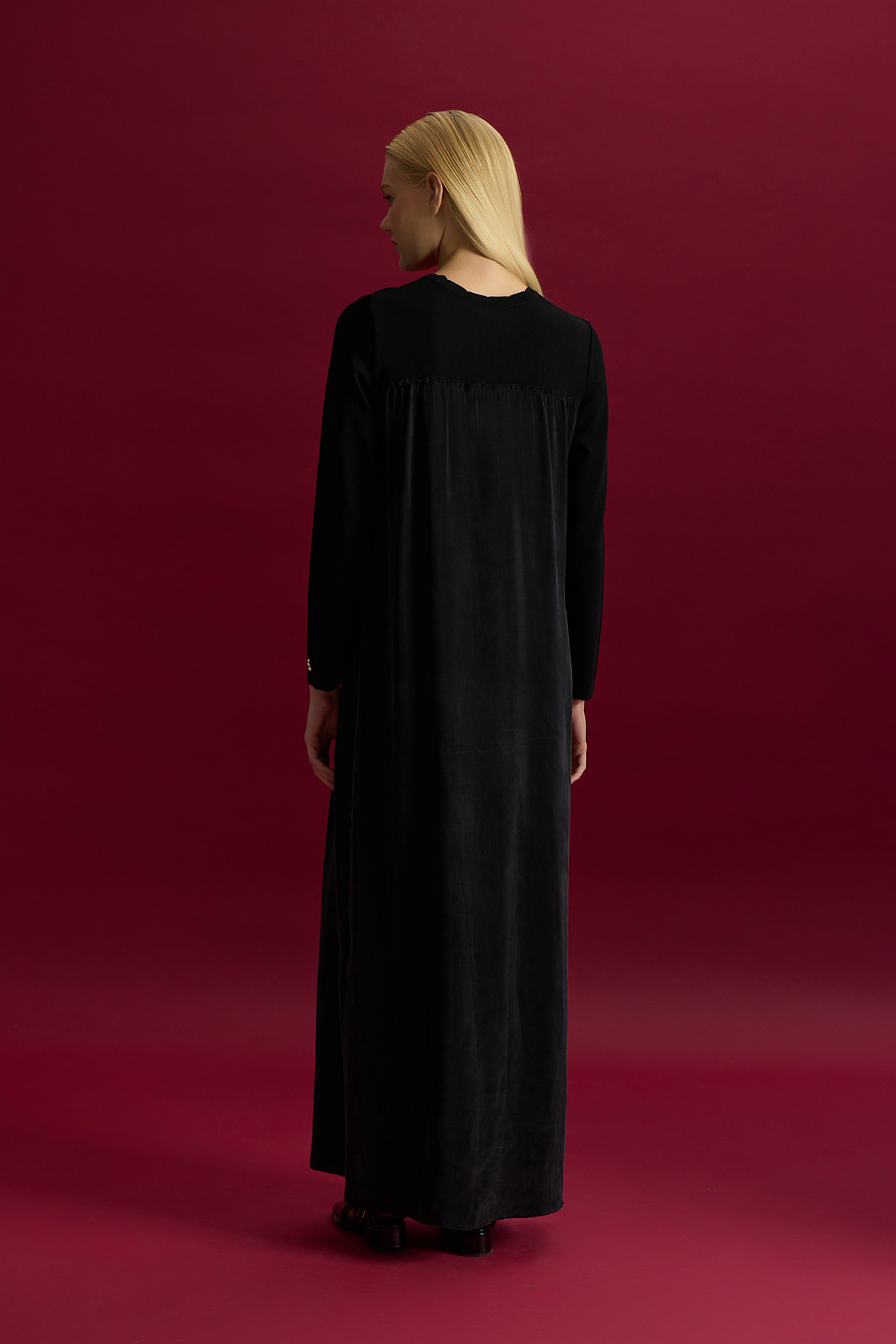 Büzgü Detaylı Triko Cupro Elbise Siyah