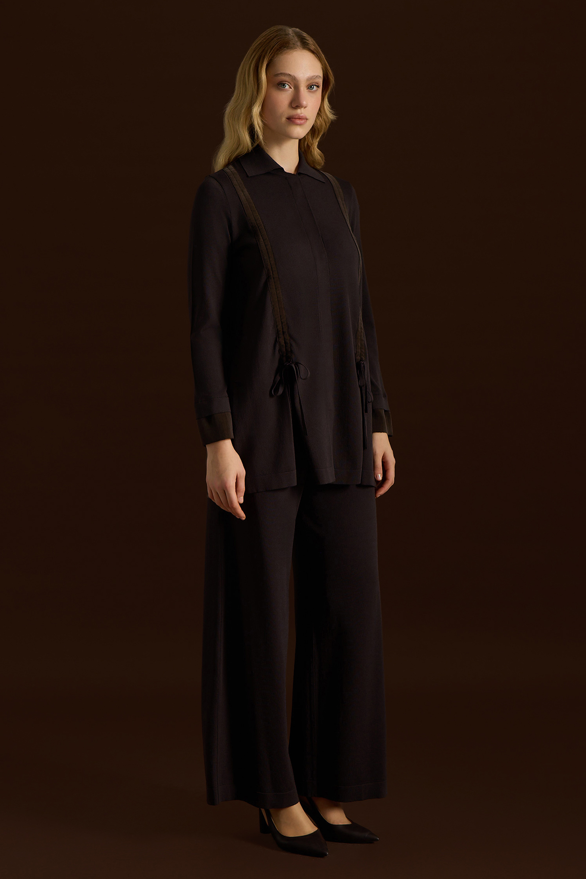 Büzgü Detaylı Triko Gömlek Kahverengi