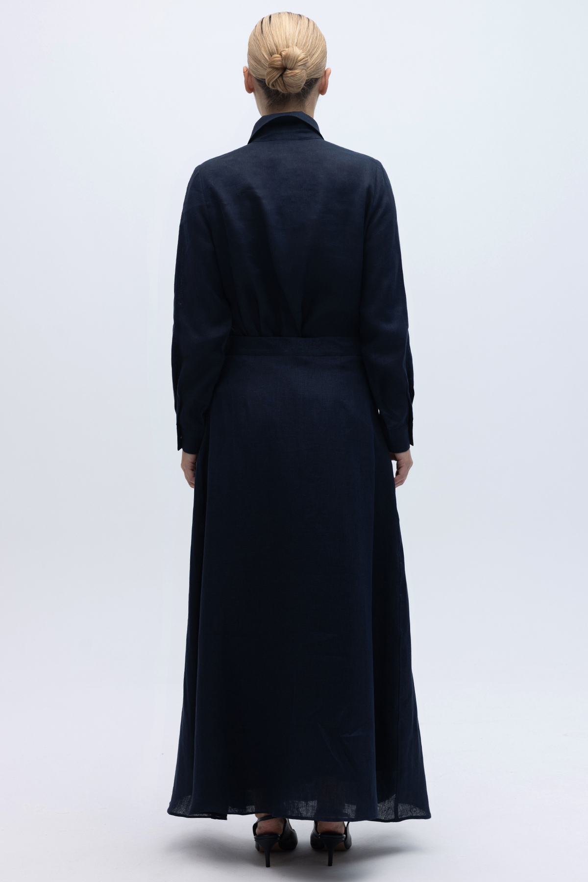 Uzun Kollu Düz Renk Keten Elbise North Sea