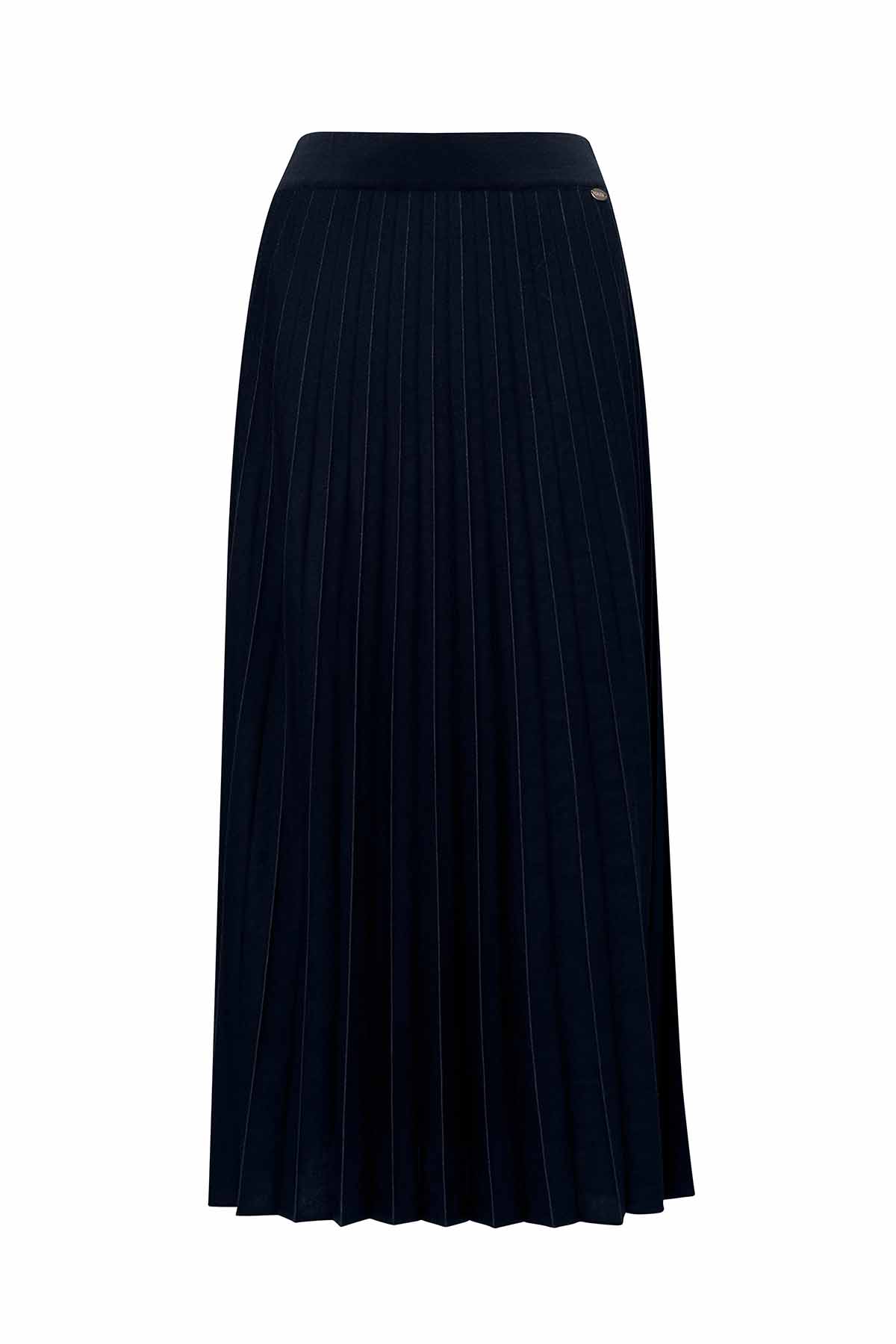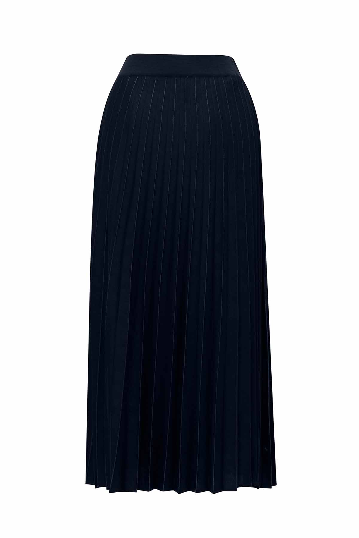 T26K-2004 Çizgi Detaylı Plise Triko Etek OASI-DARK NAVY