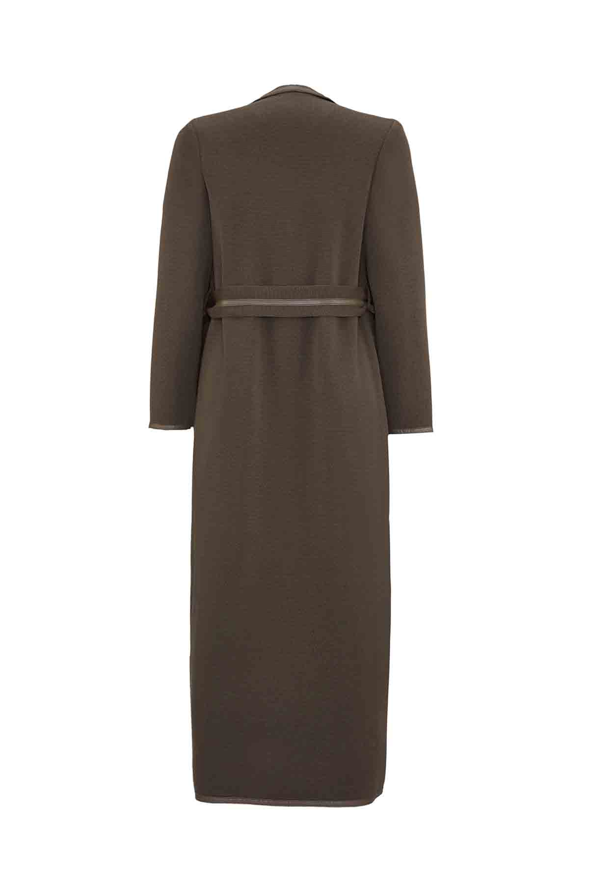 T26K-9010 Deri Şerit Detaylı Triko Hırka DARDO-TAUPE