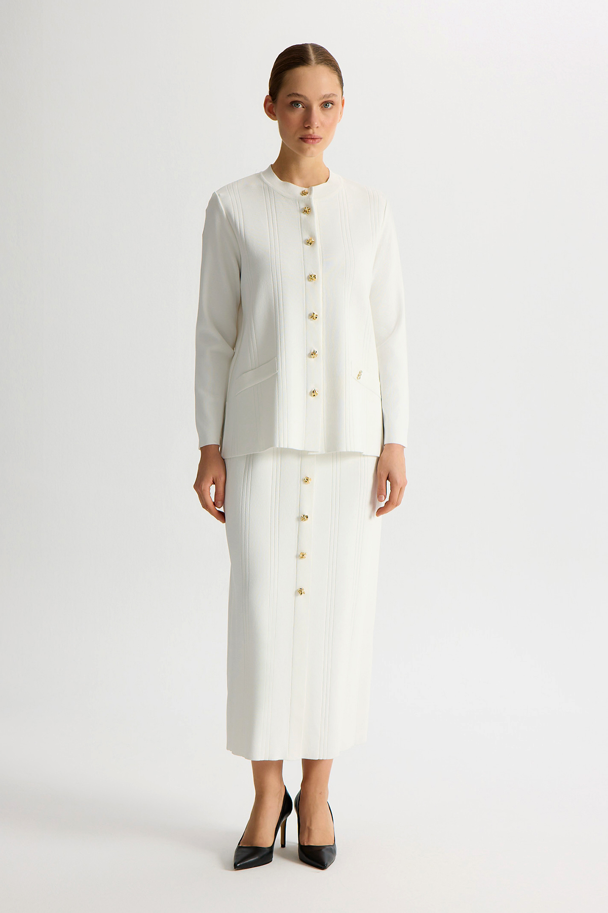Buttoned Classic Knit Jacket