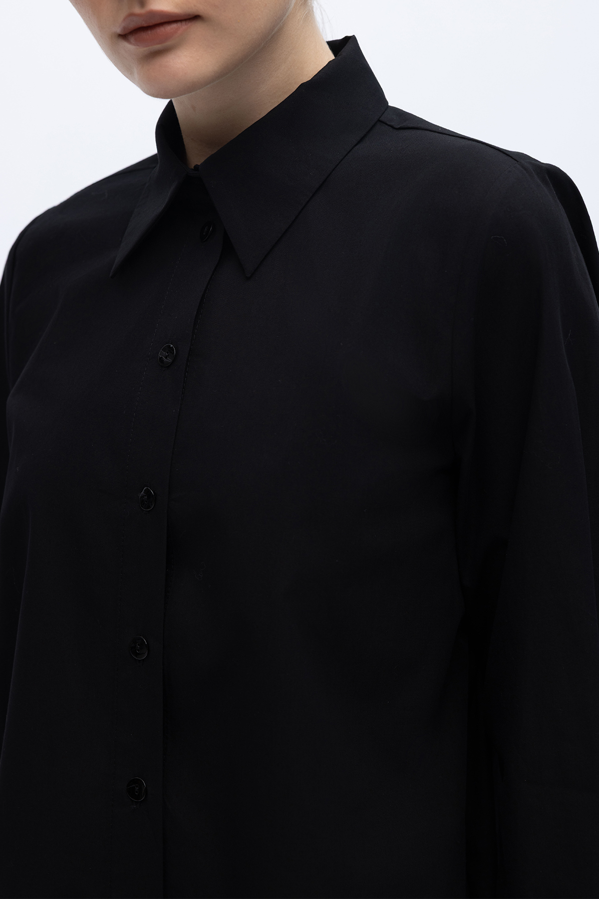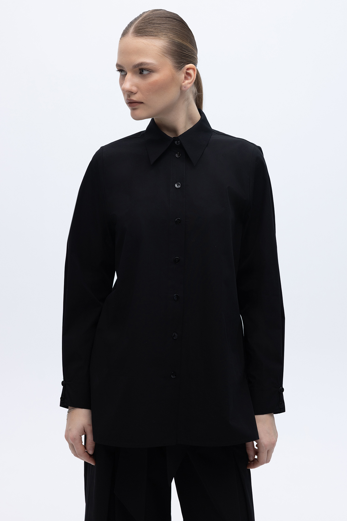 Düz Kesim Keten Gömlek Siyah