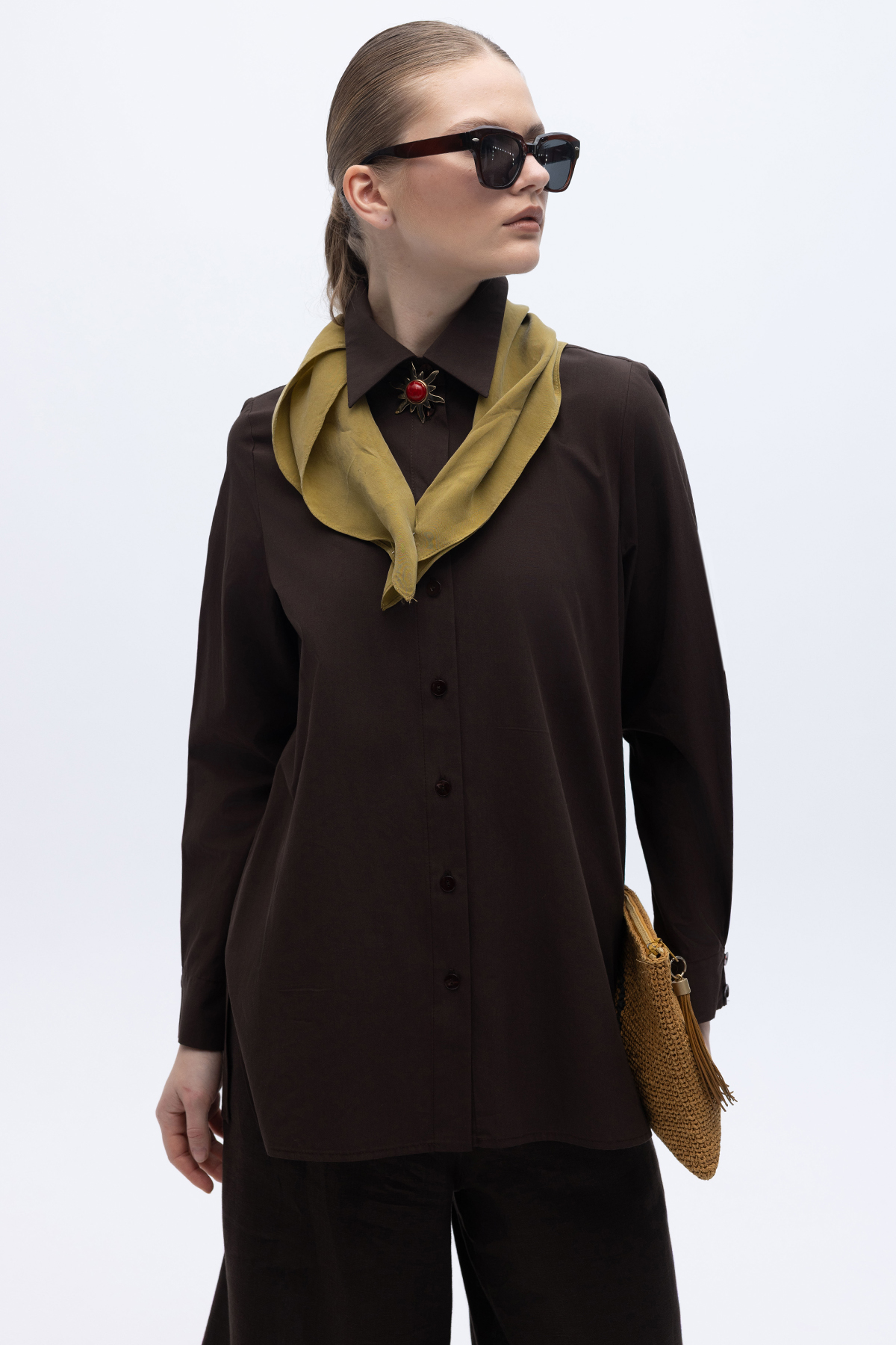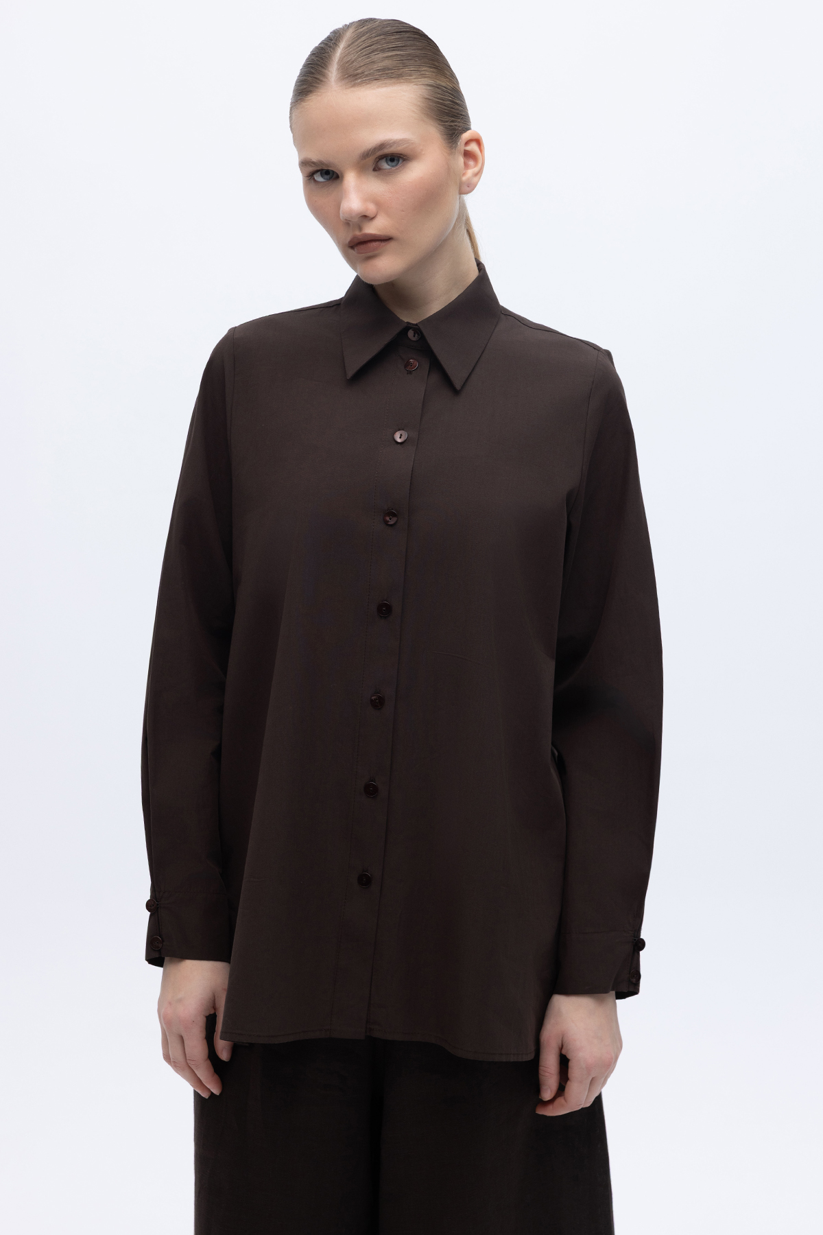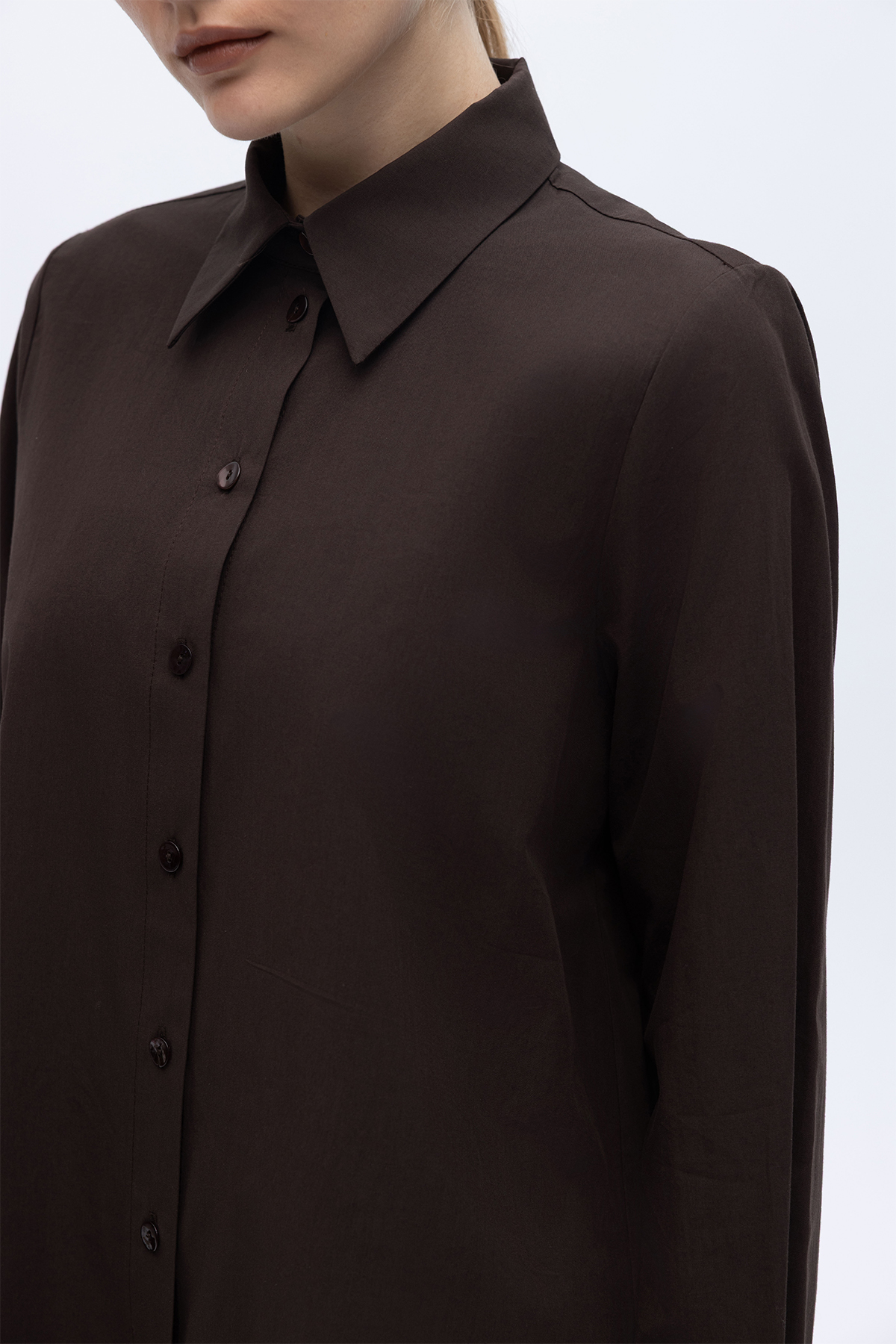 Düz Kesim Keten Gömlek Kahverengi
