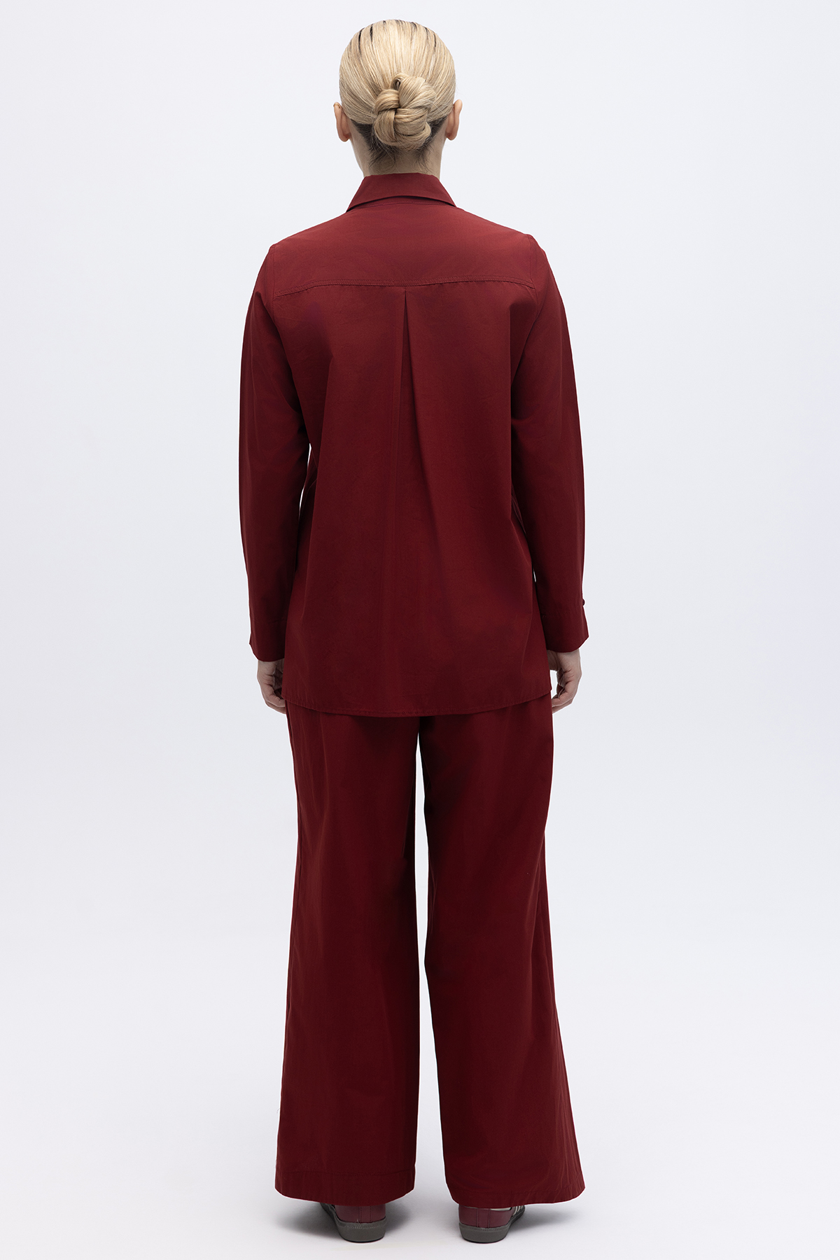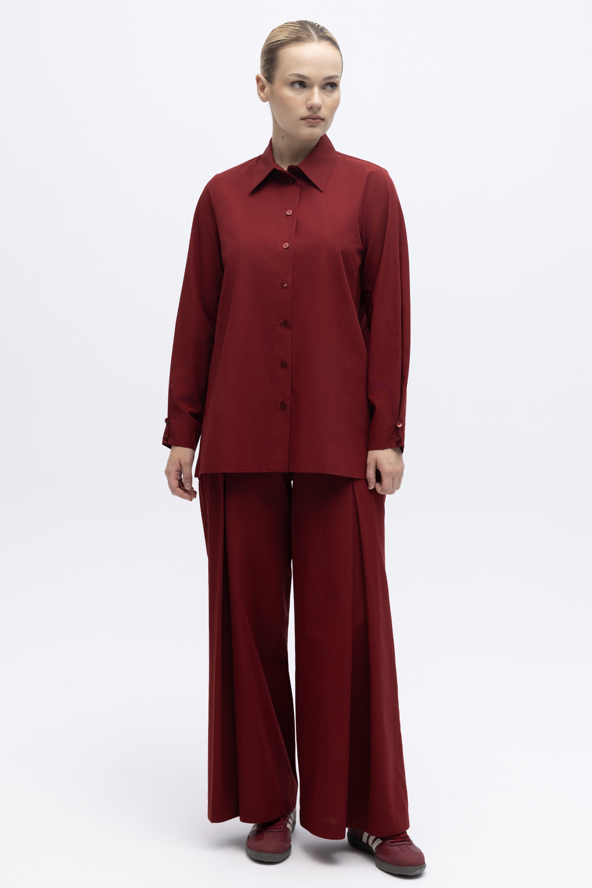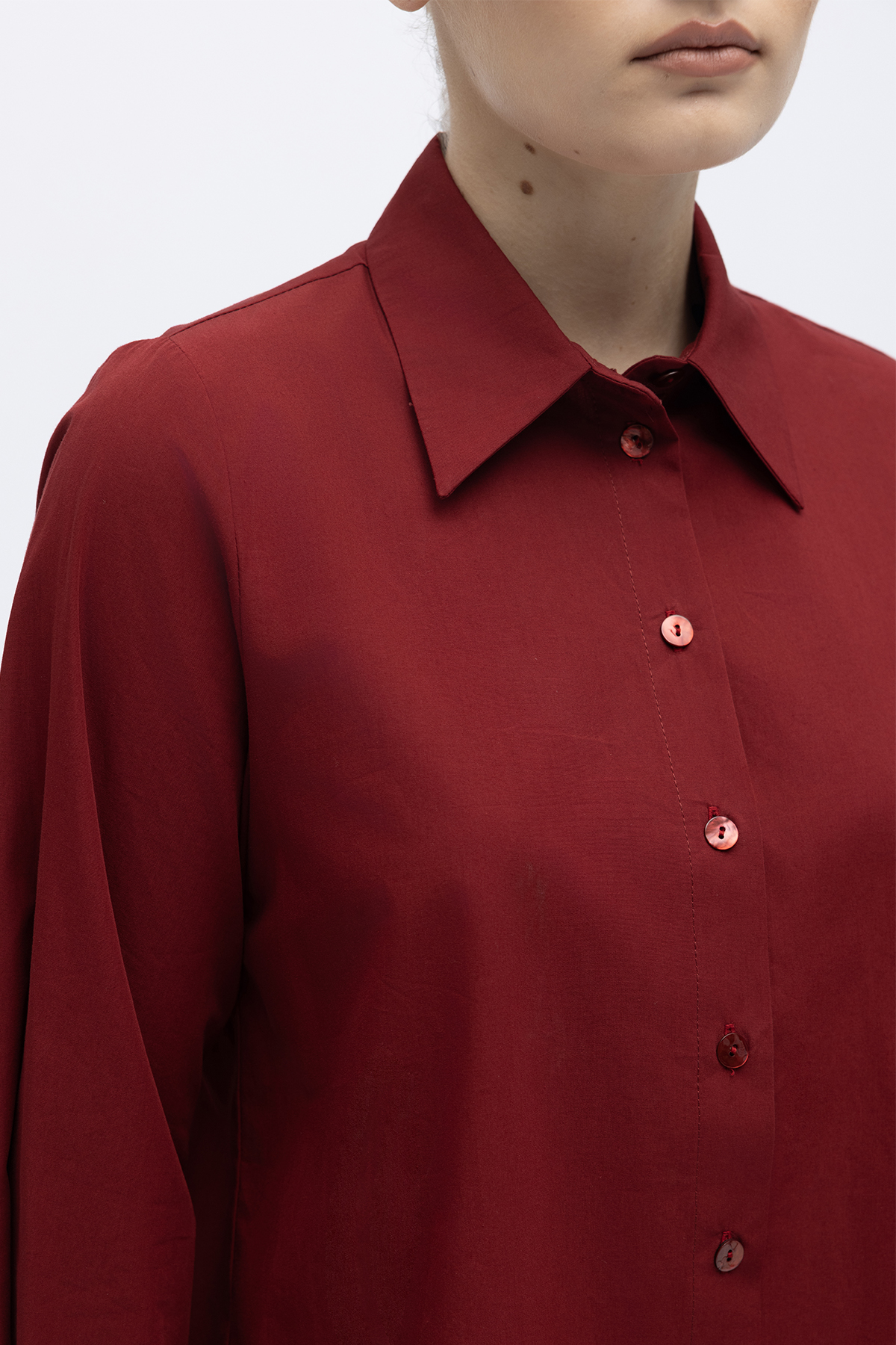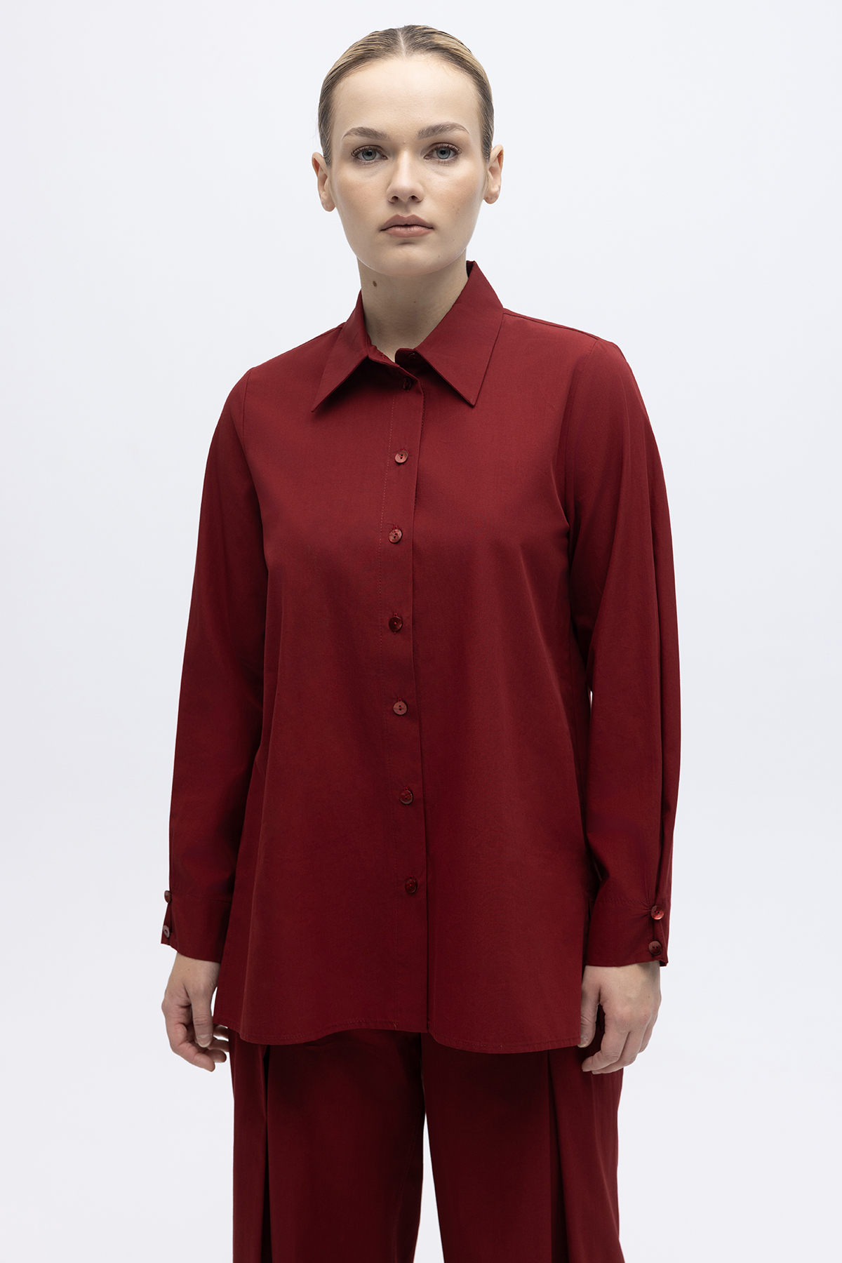Düz Kesim Keten Gömlek Cherry