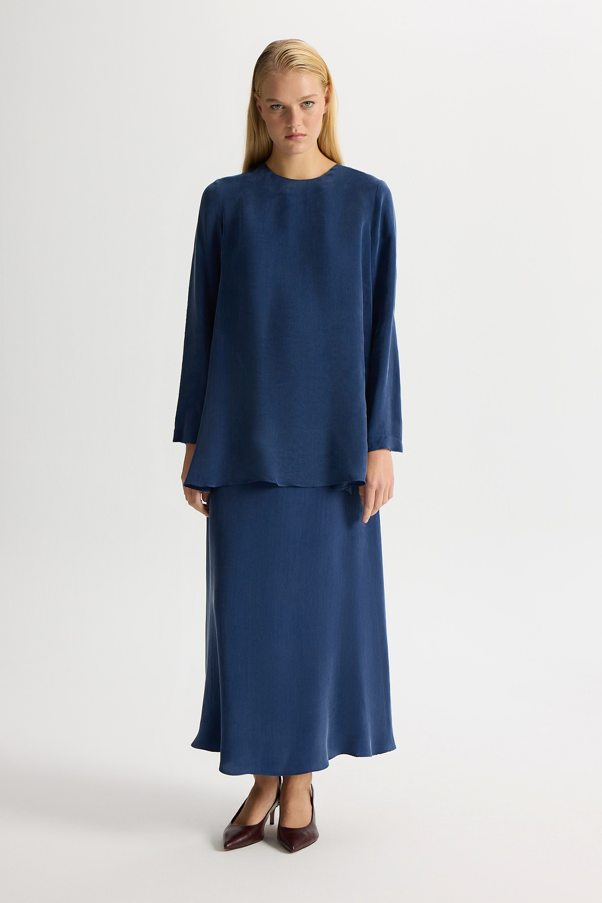 Solid Color Cupro Skirt