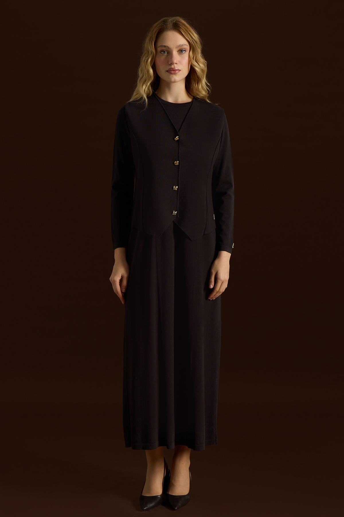 Düz Renk Rahat Kalıp Elbise Kahverengi