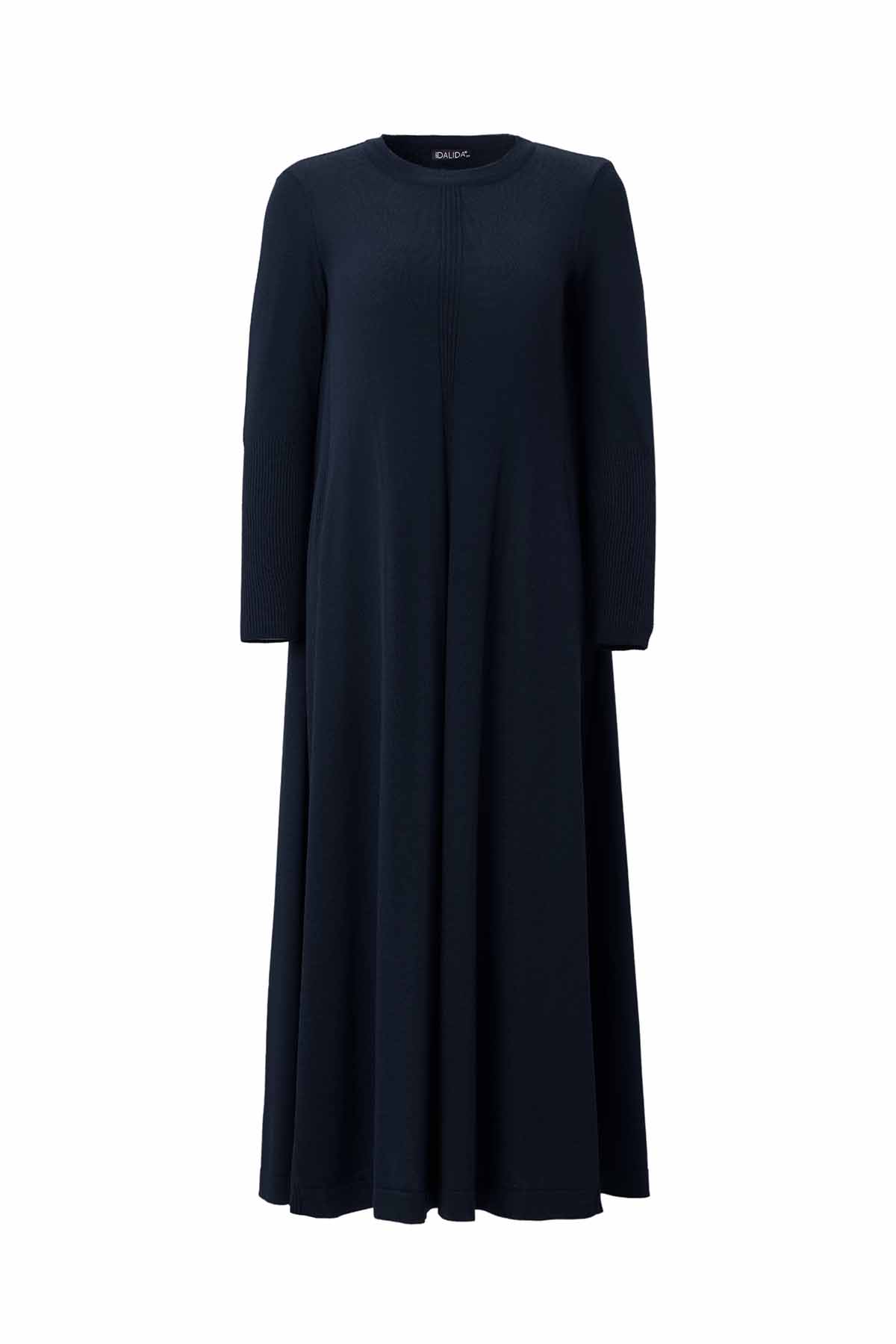 Düz Renk Rahat Kesim Triko Lacivert Elbise, hafif ve esnek triko kumaşıyla gün boyu konfor sağlar. Lacivert tonu, farklı kombinlerle kolayca uyum sağlar ve şık bir görünüm sunar.