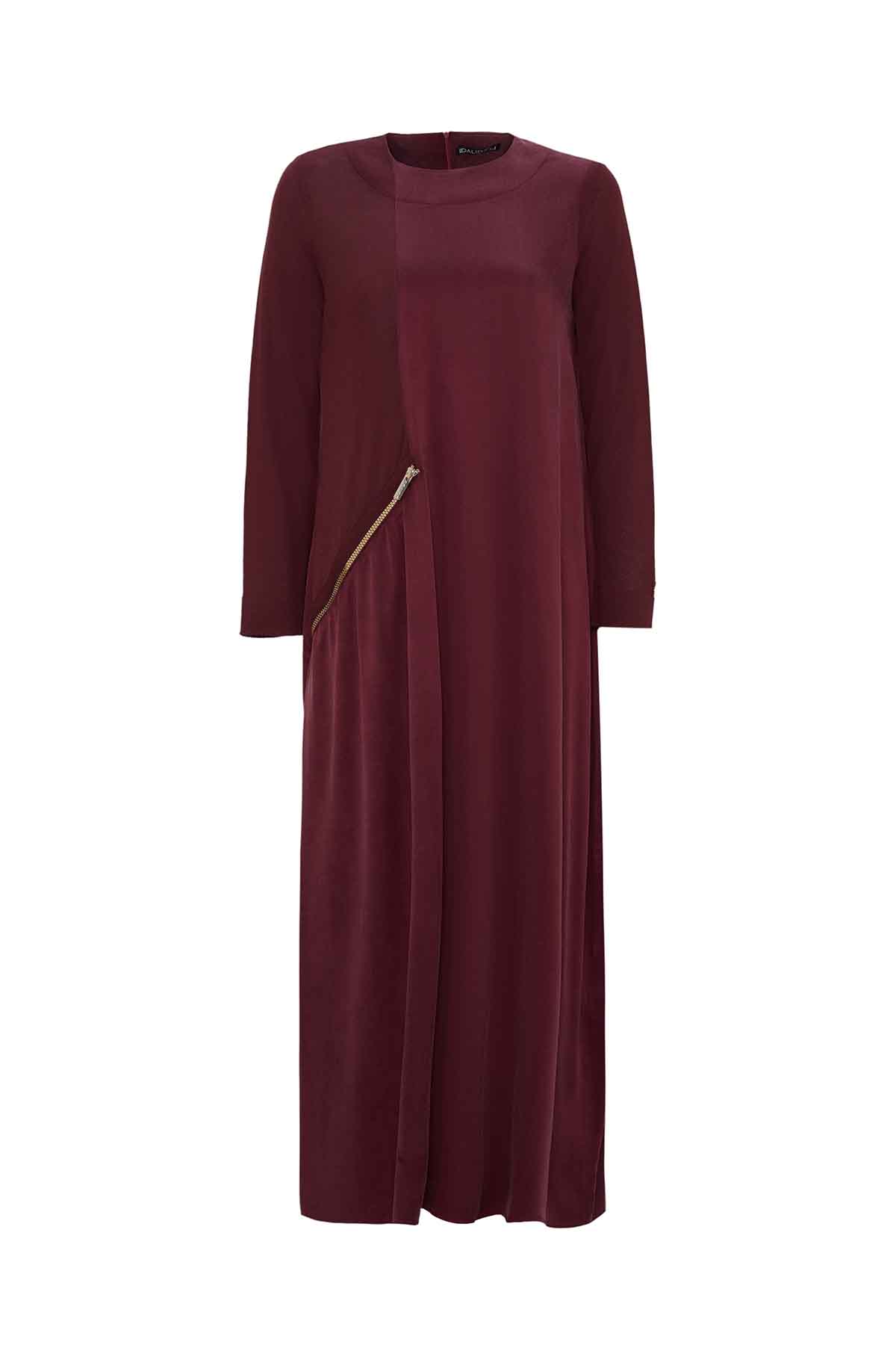 T26K-4008 Fermuar Detalı Cupro Elbise TOGA-BORDO