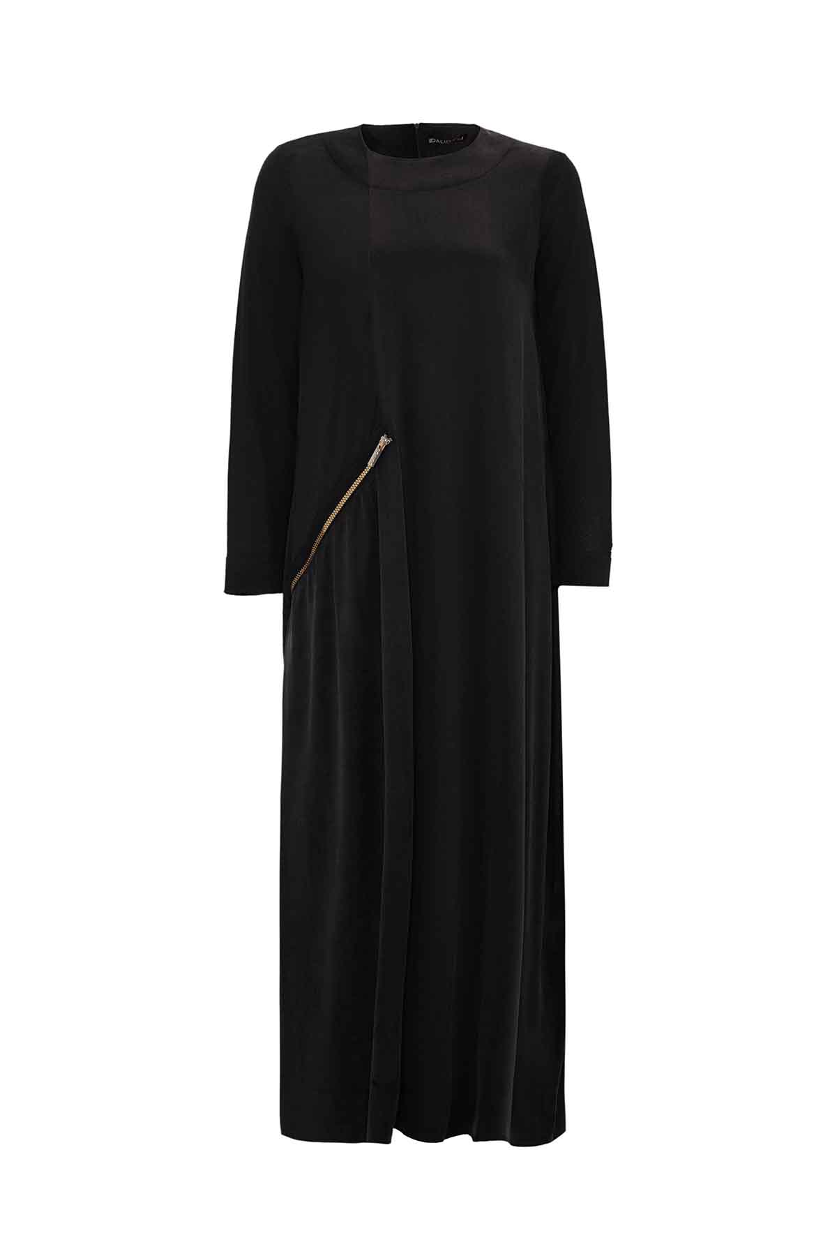 The Zipper Detailed Black Cupro Dress features a stylish front zipper for a modern look. Its soft cupro fabric and relaxed fit ensure all-day comfort. Minimalist design allows versatile styling for both casual and special occasion outfits. The classic black color pairs effortlessly with any accessories and shoes.