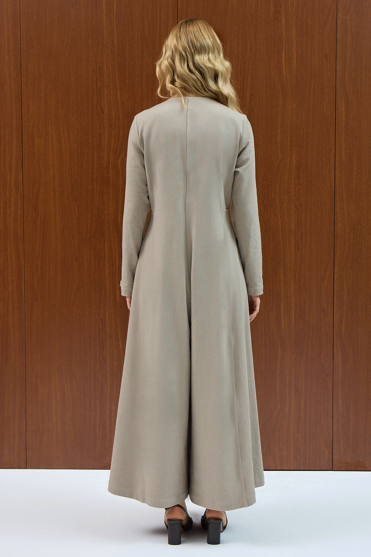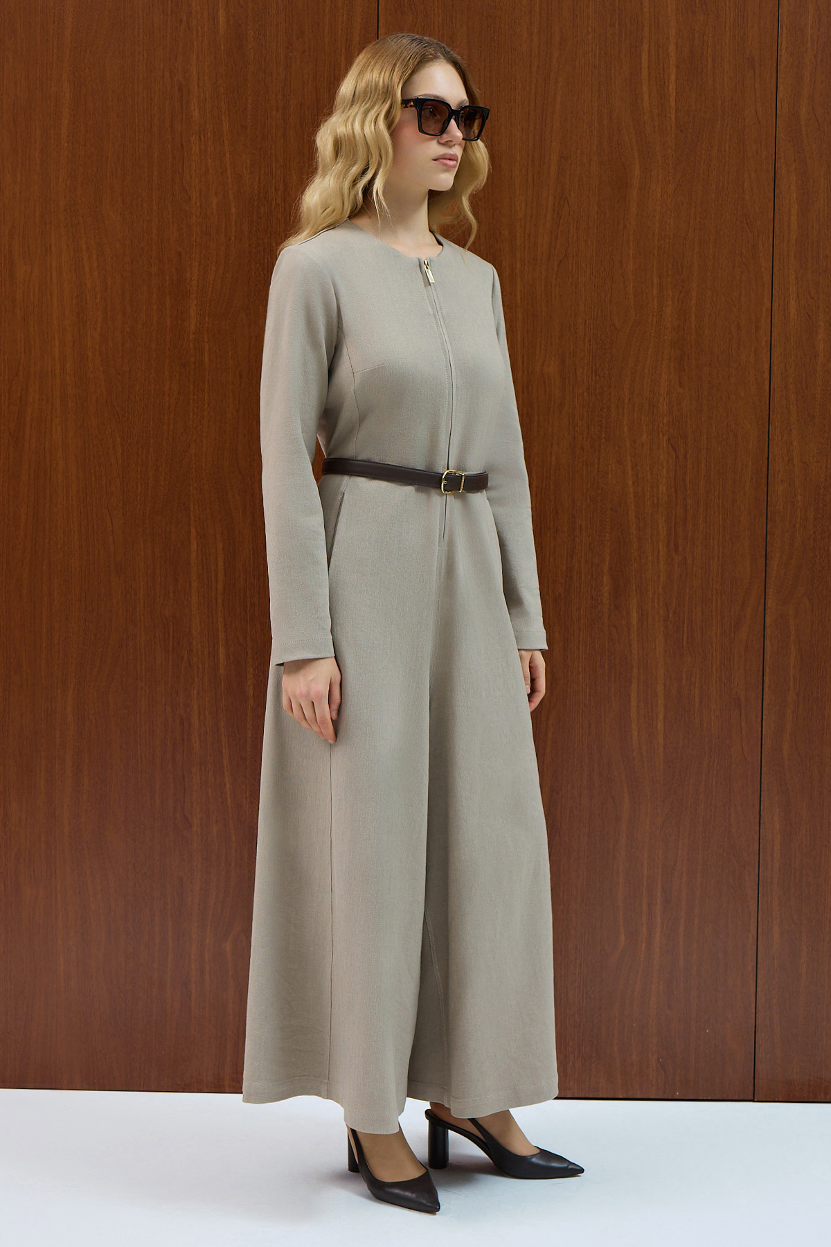 Fermuar Detaylı Denim Tulum Elbise Stone