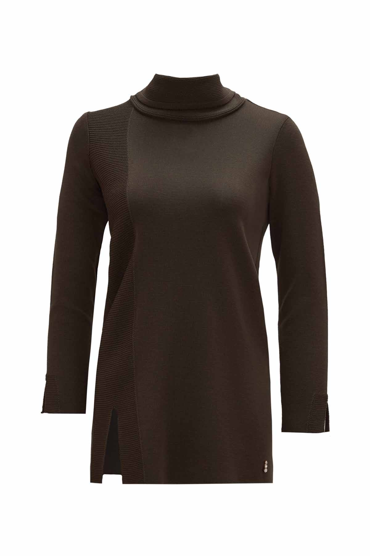 T26K-6009 Fitil Örgü Detaylı Boğazlı Triko Tunik DARDO-TAUPE