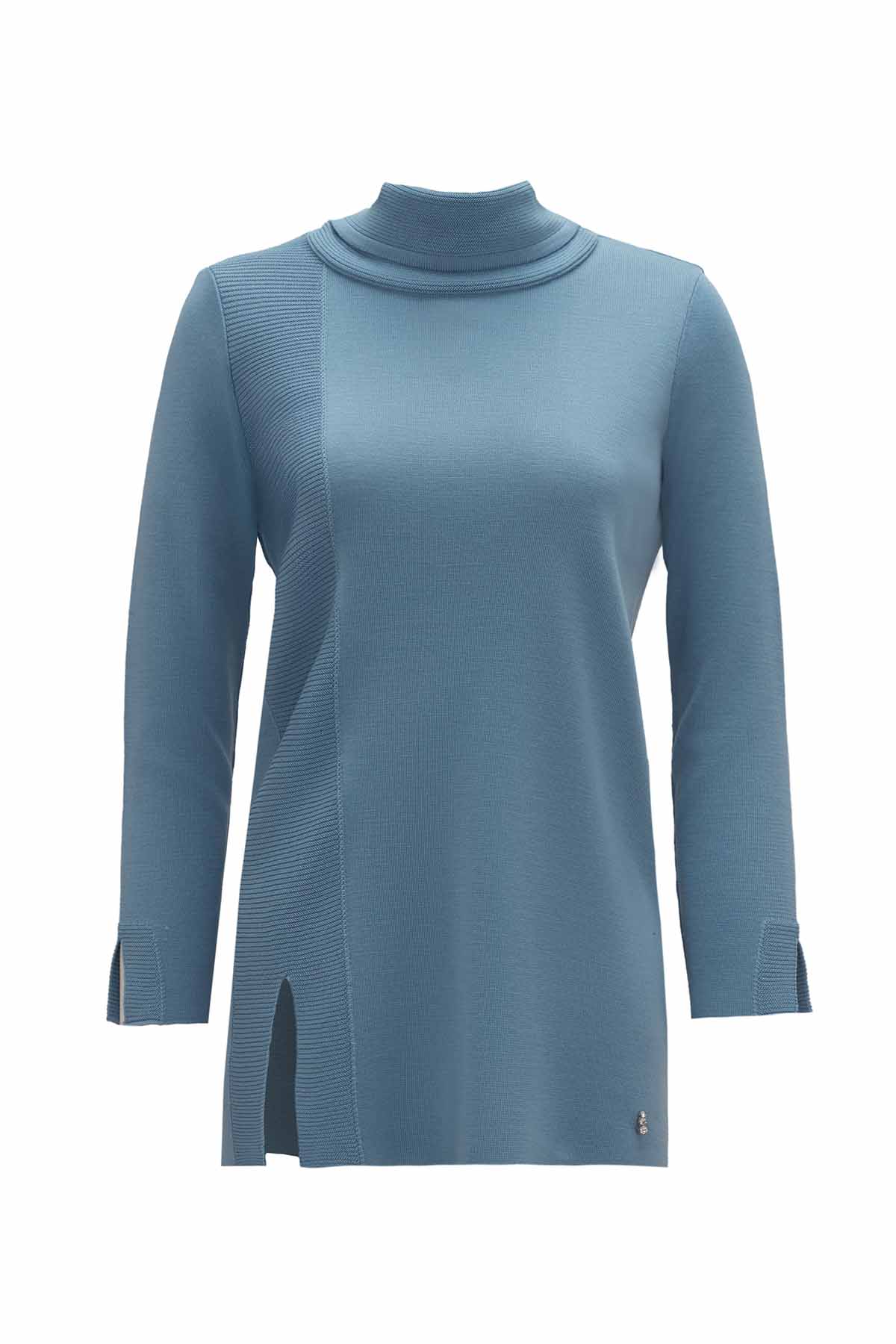 T26K-6009 Fitil Örgü Detaylı Boğazlı Triko Tunik NERVİ-BLUE