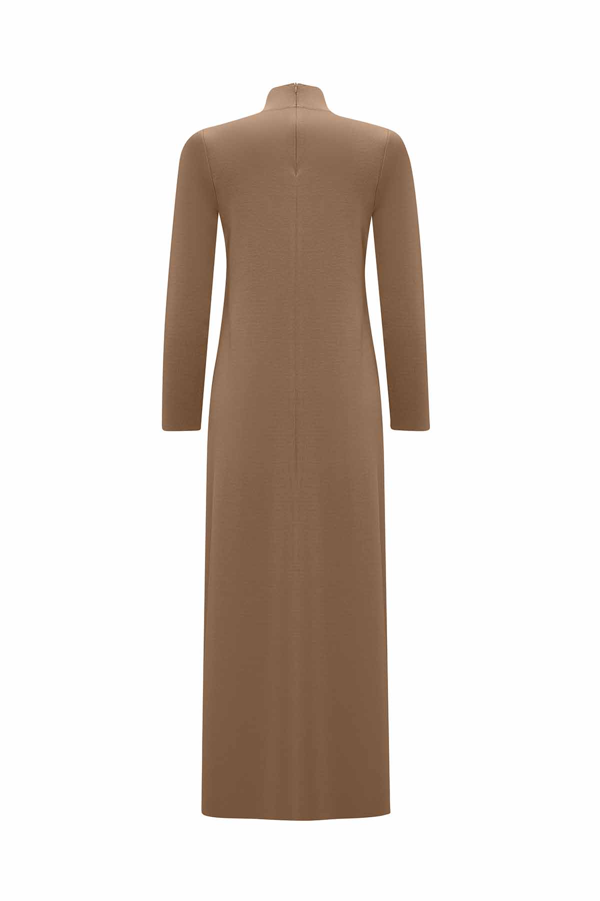The front knit detail solid camel dress blends cozy comfort with refined style. Crafted from soft knit fabric, it features subtle front detailing that enhances its minimalist silhouette. The warm camel shade makes it perfect for both casual and elegant occasions a sophisticated essential from Miss Dalida’s collection.