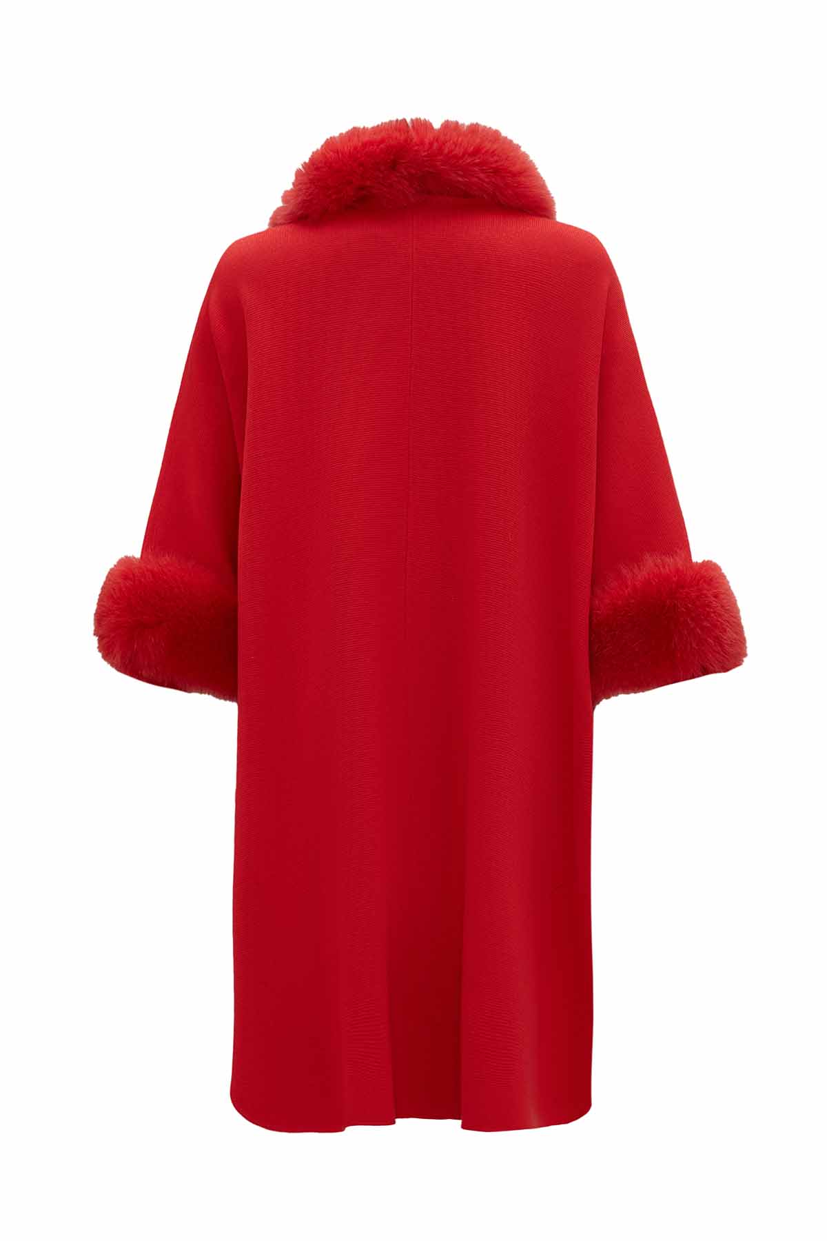 The Fur Detailed Red Knit Poncho blends warmth with elegance through its soft knit texture and striking red tone. Enhanced with refined fur details, it brings sophistication to any winter ensemble. Ideal for both daily wear and special occasions, this poncho is a perfect choice for those seeking comfort and standout style.