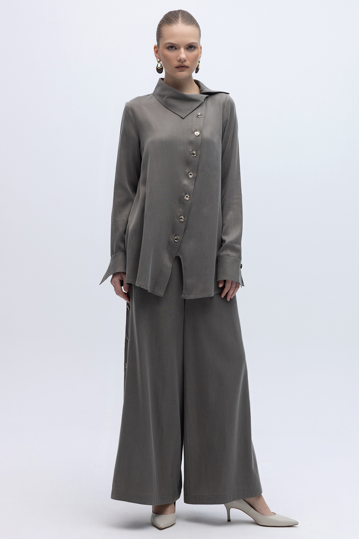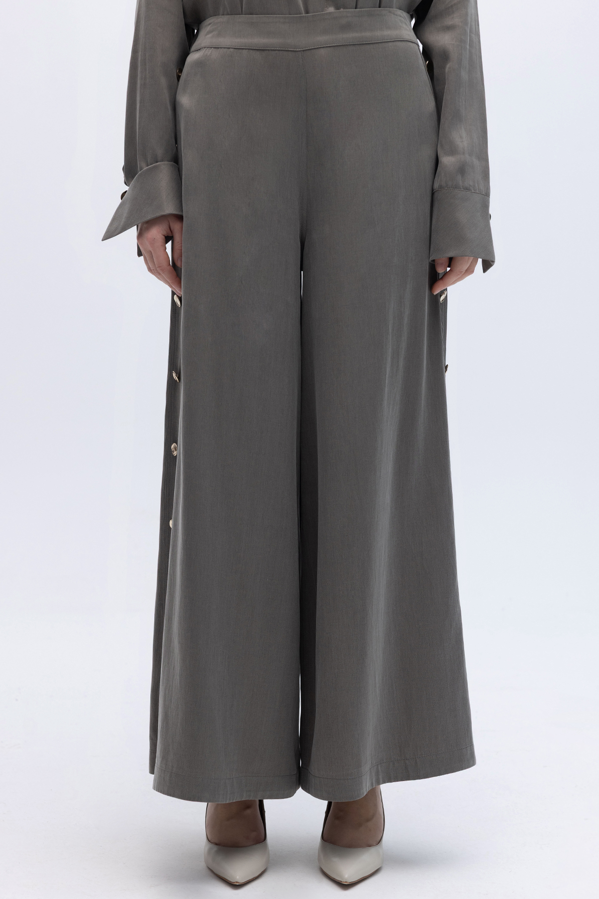 Geniş Paça İpek Keten Pantolon Mink