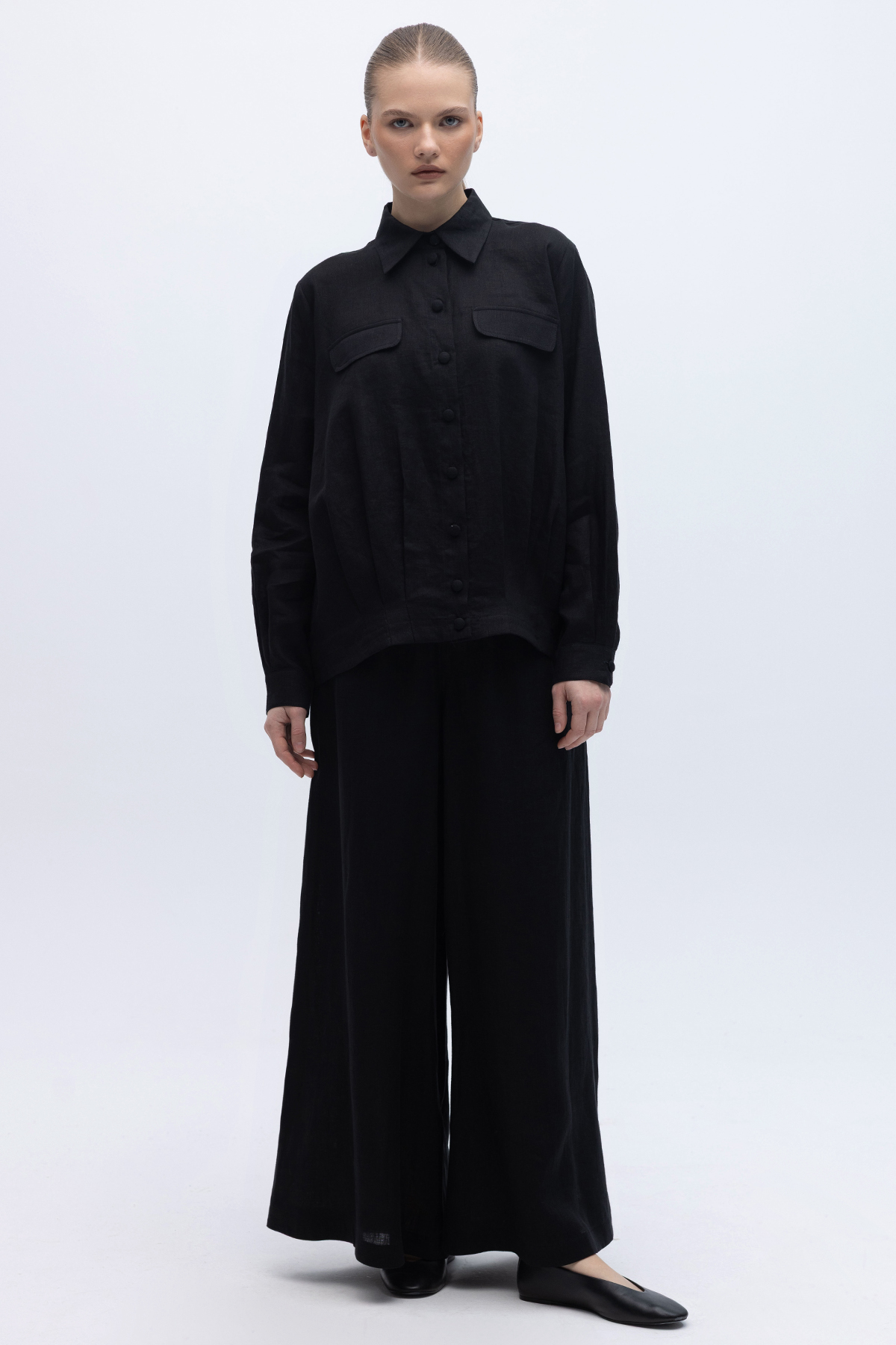 Geniş Paça Keten Pantolon Siyah