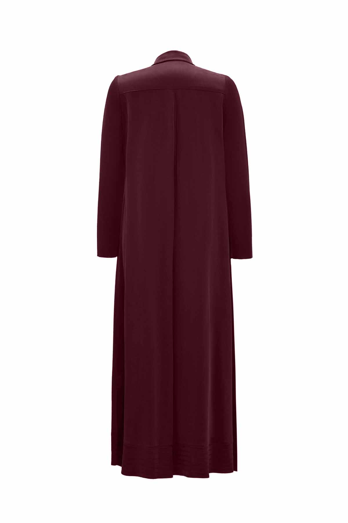 The Shirt Collar Burgundy Cupro Dress combines classic style with modern comfort. Featuring a soft draping cupro fabric and a refined shirt collar, this dress in deep burgundy adds elegance to both everyday and office looks.