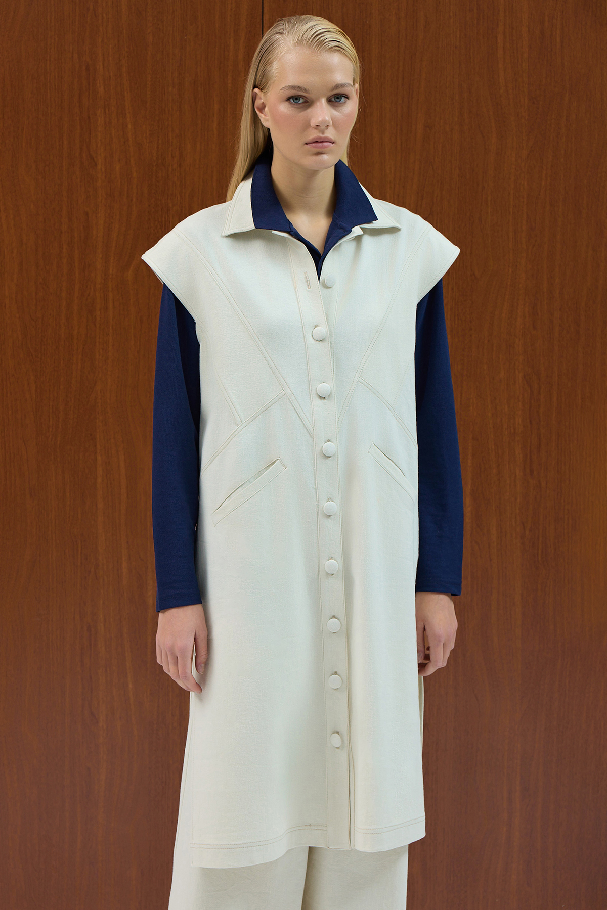 Gömlek Yaka Denim Yelek Ekru