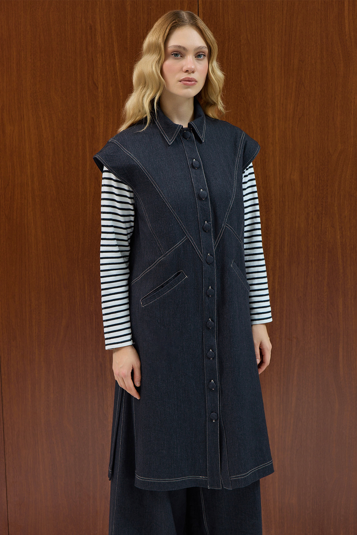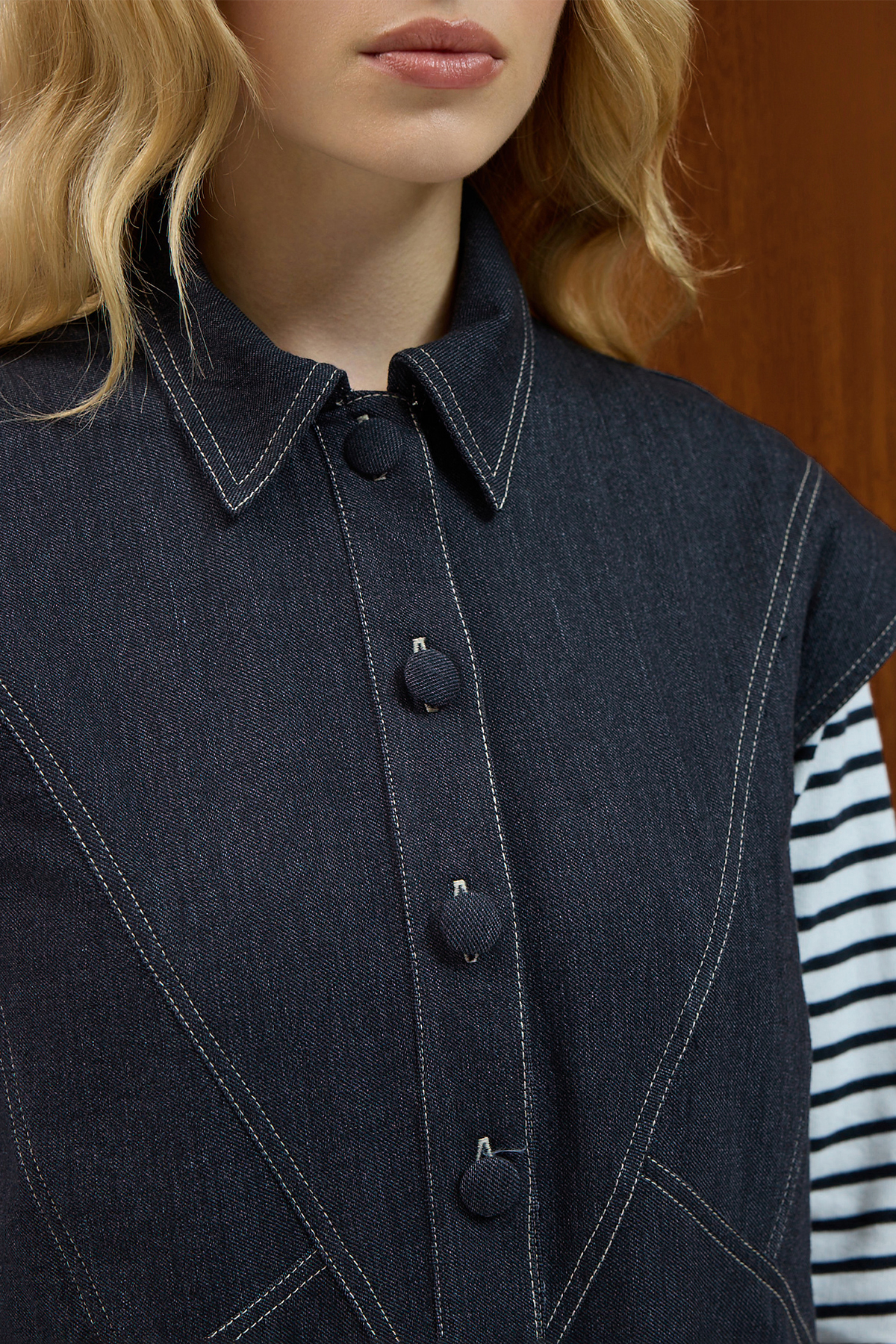 Gömlek Yaka Denim Yelek Siyah