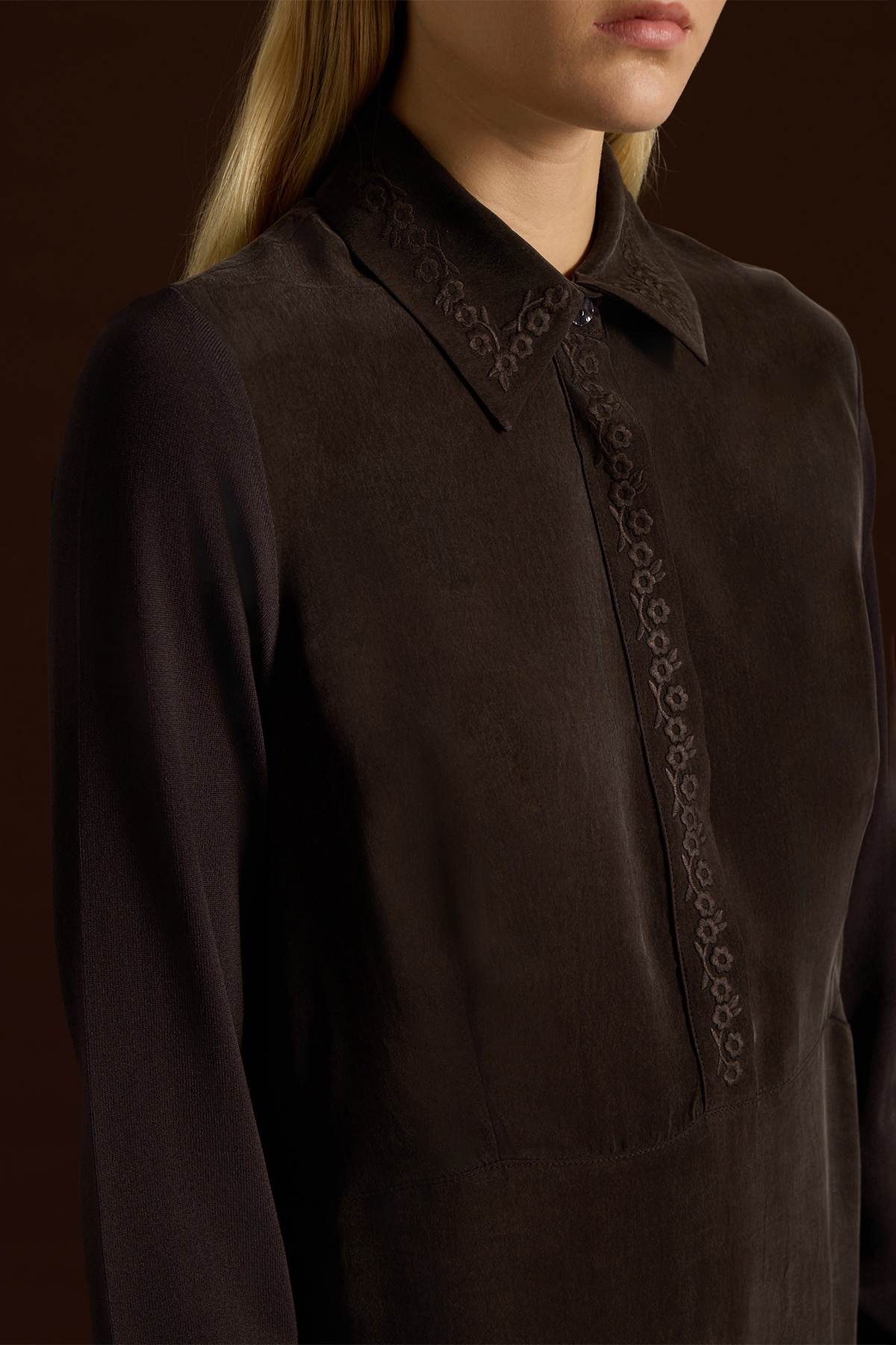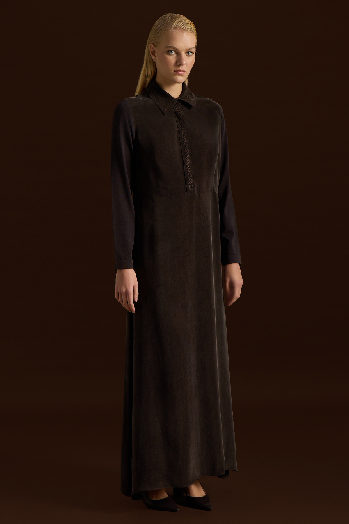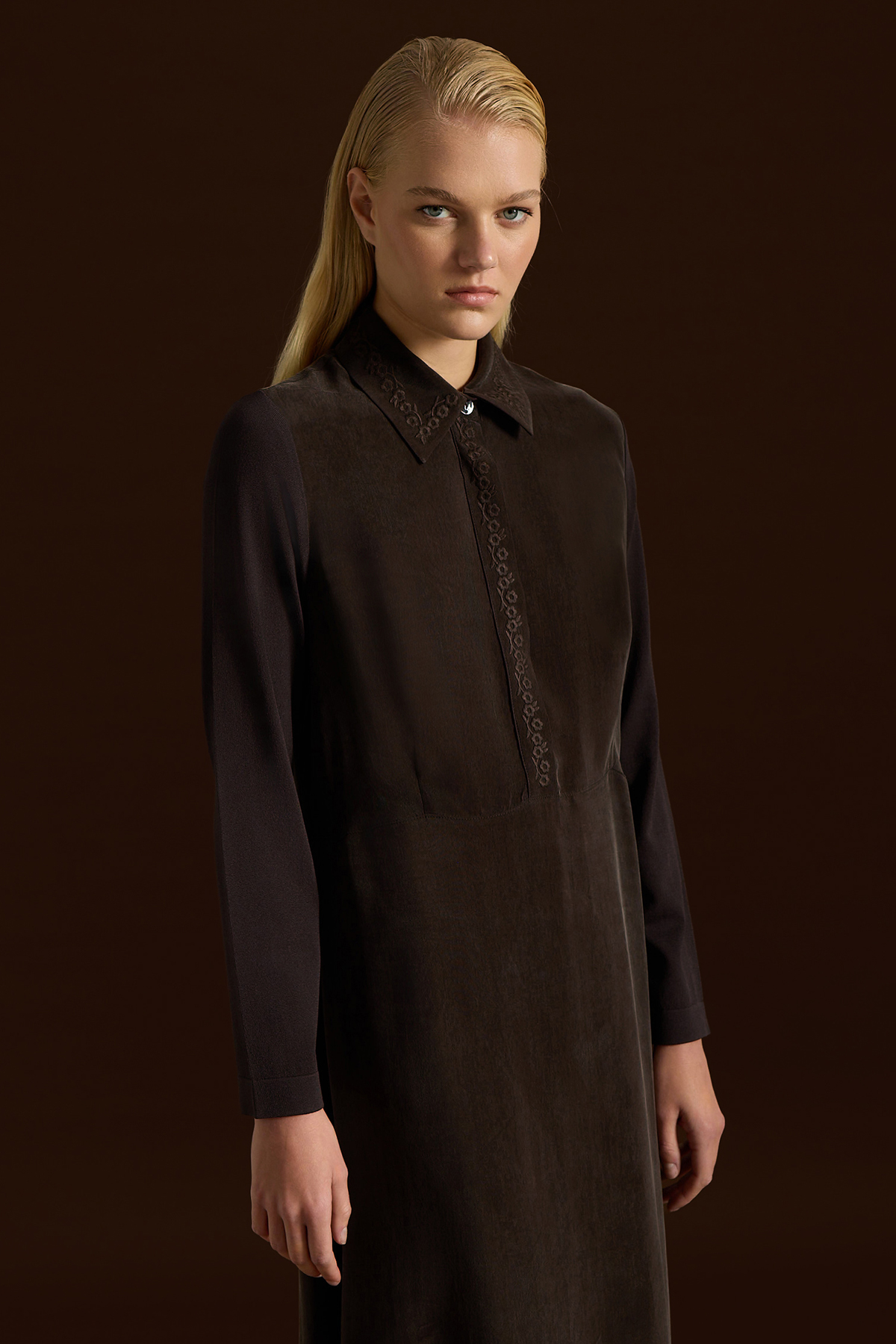 Shirt Collar Embroidered Cupro Dress