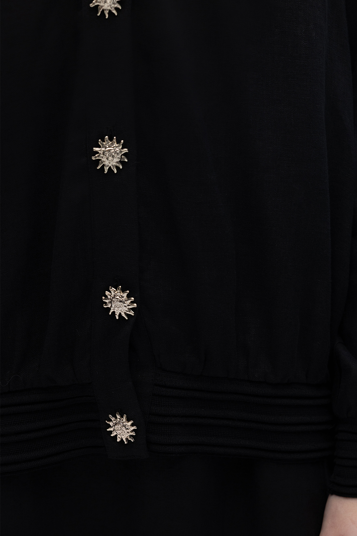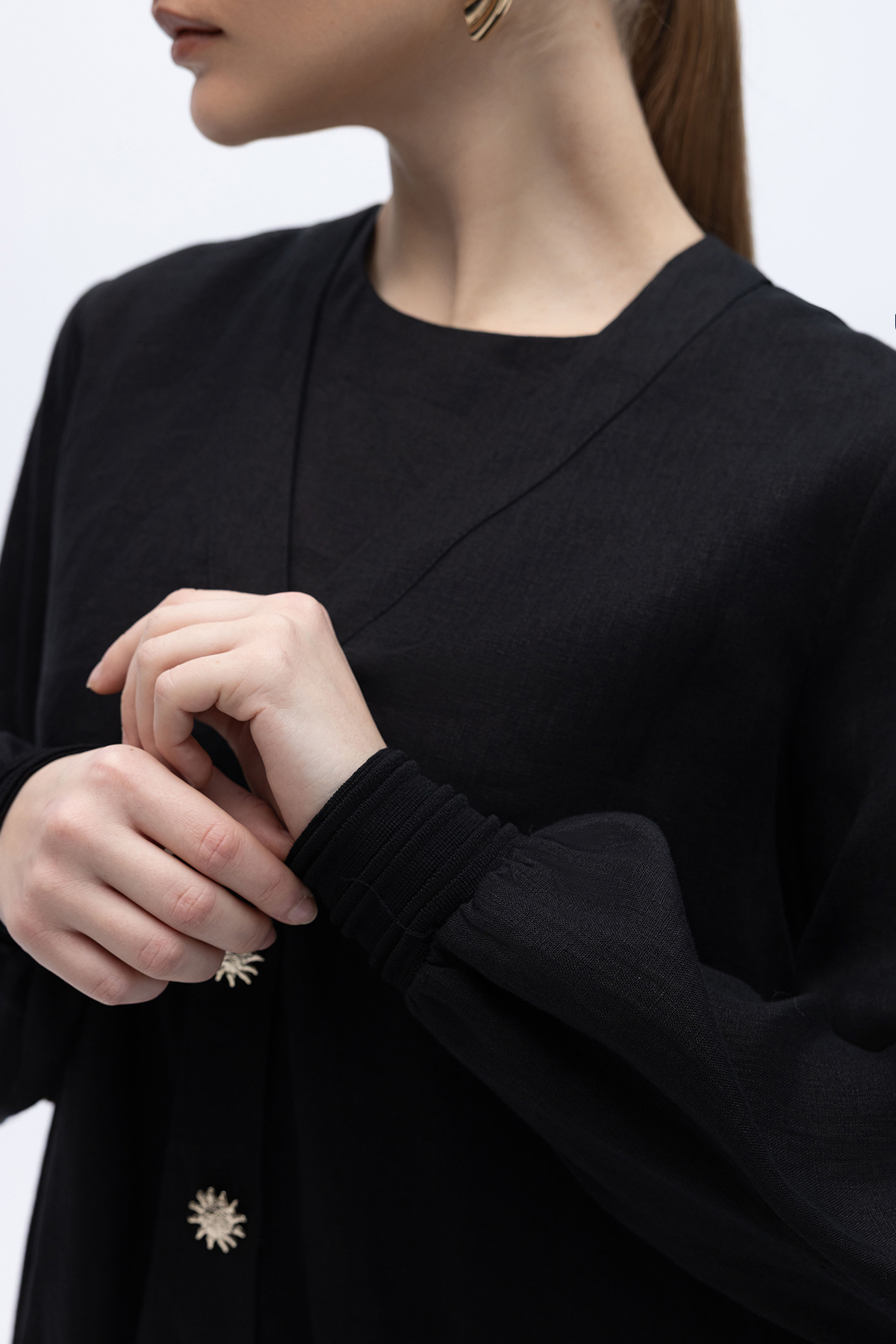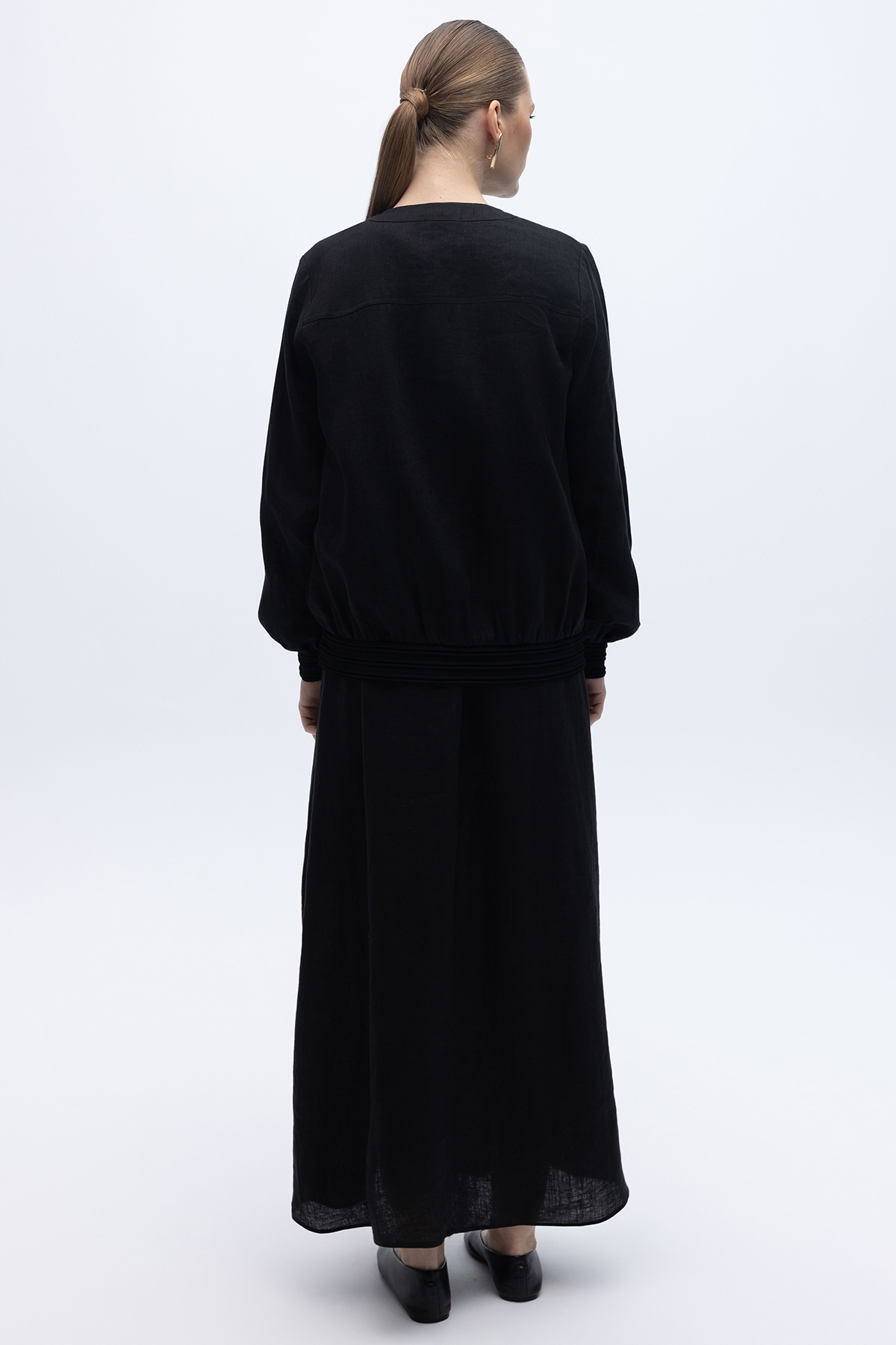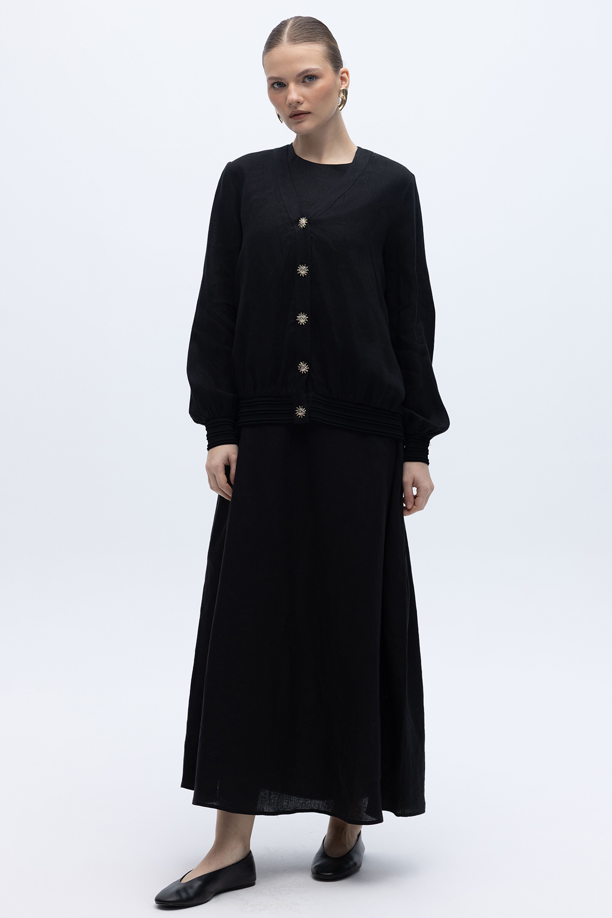 Güneş Düğmeli Elbise Ceket Keten Takım Siyah