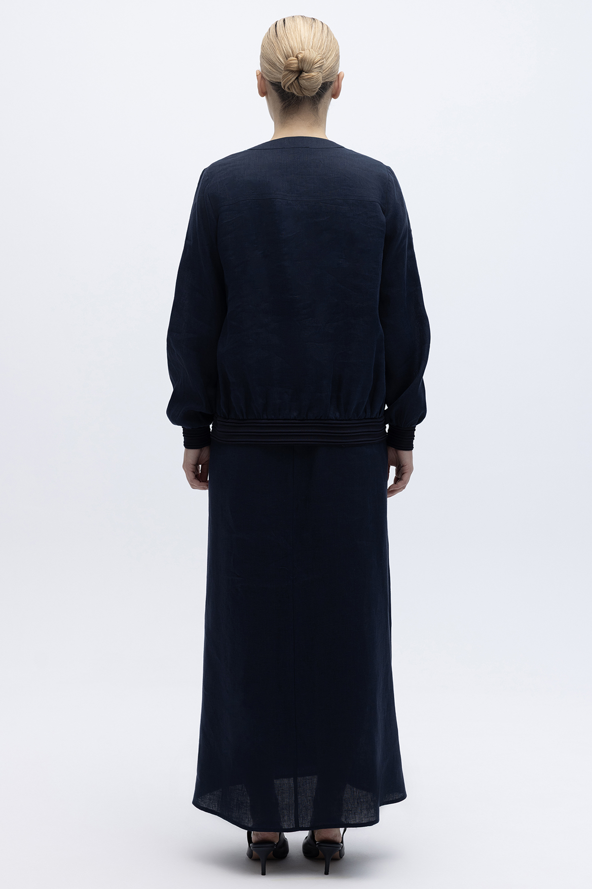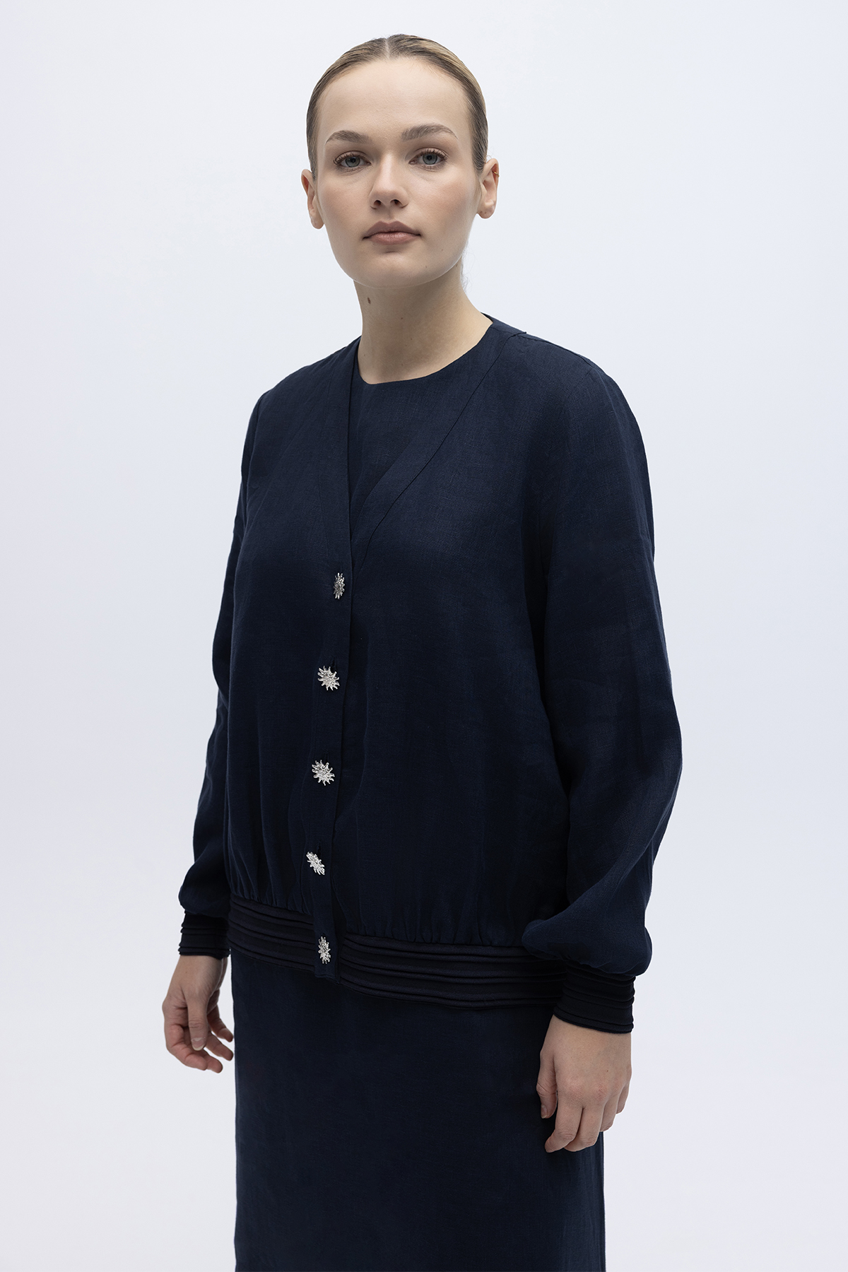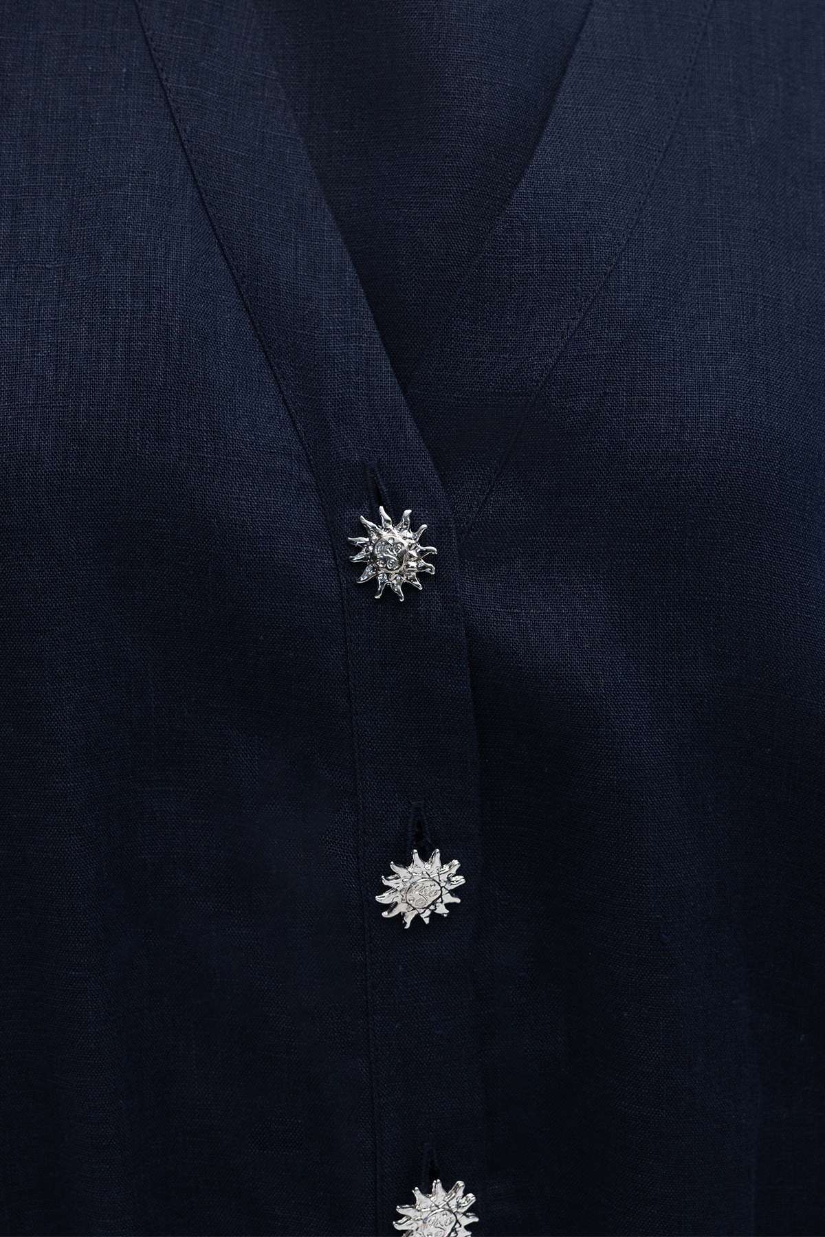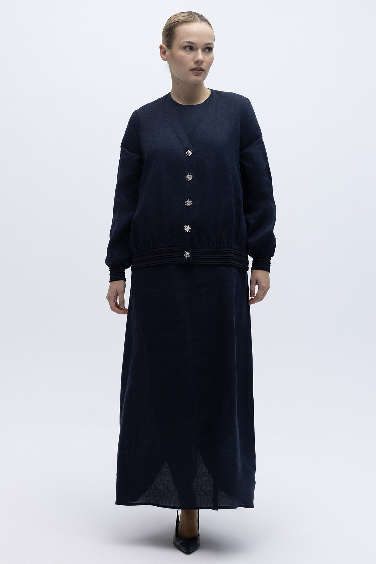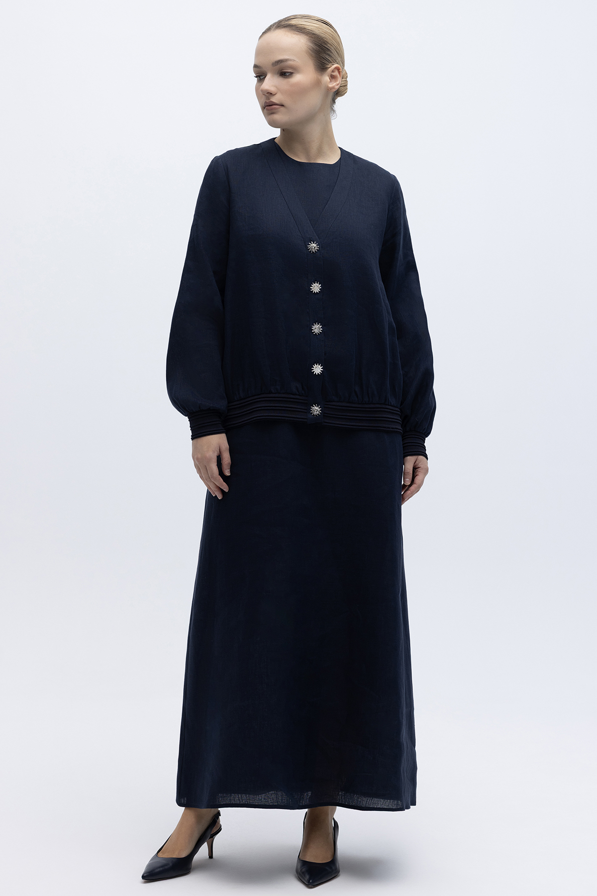 Güneş Düğmeli Elbise Ceket Keten Takım Lacivert