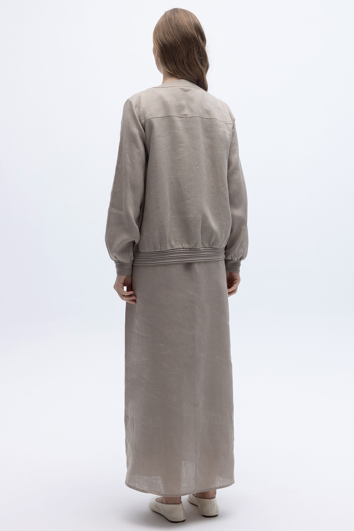 Triko Korsajlı Rahat Kesim Keten Etek Gri