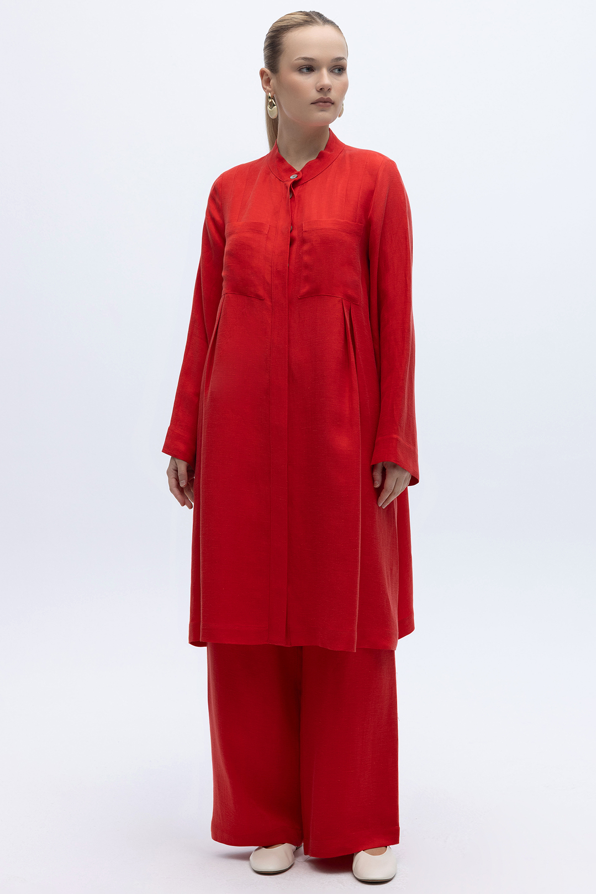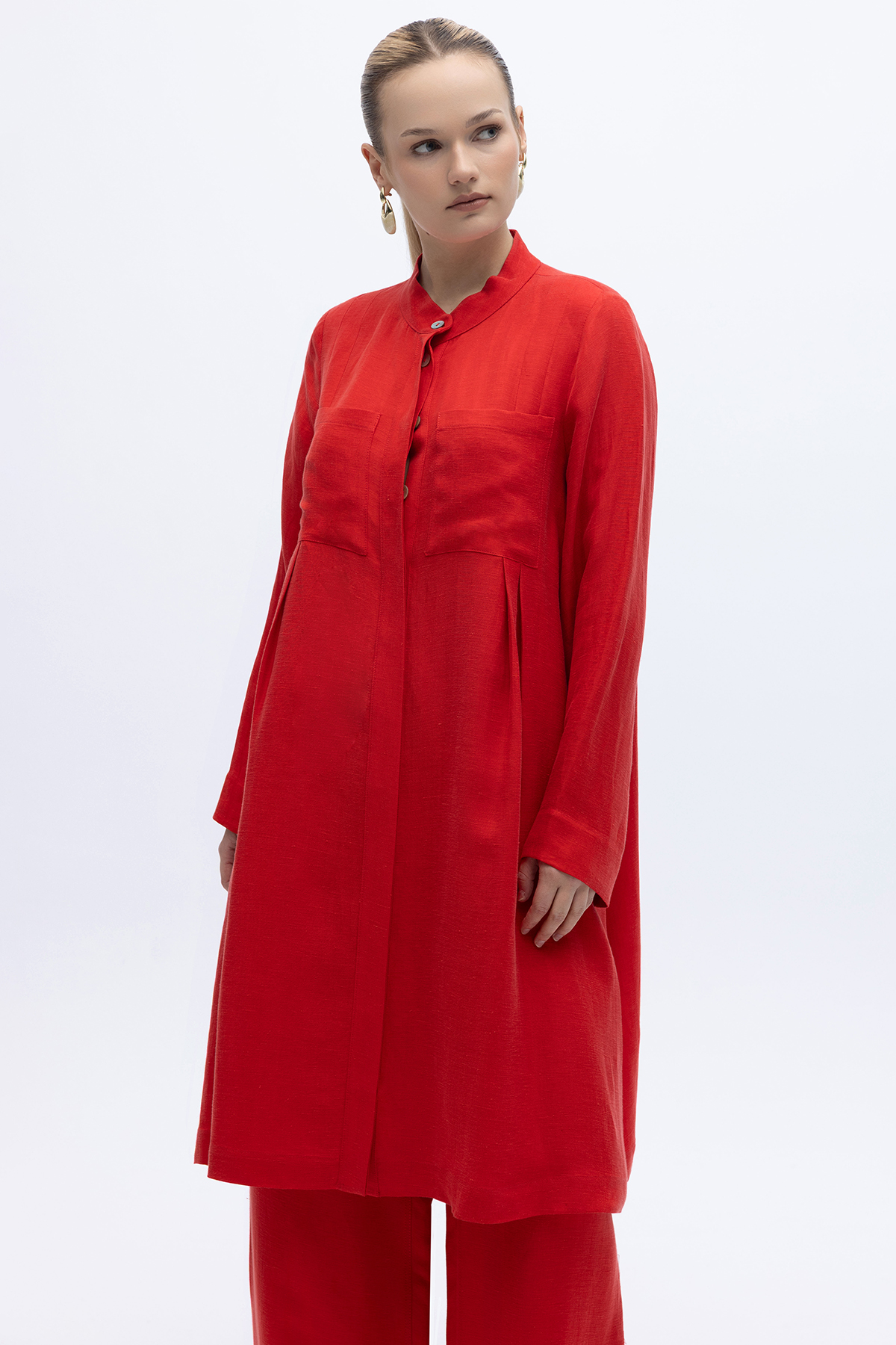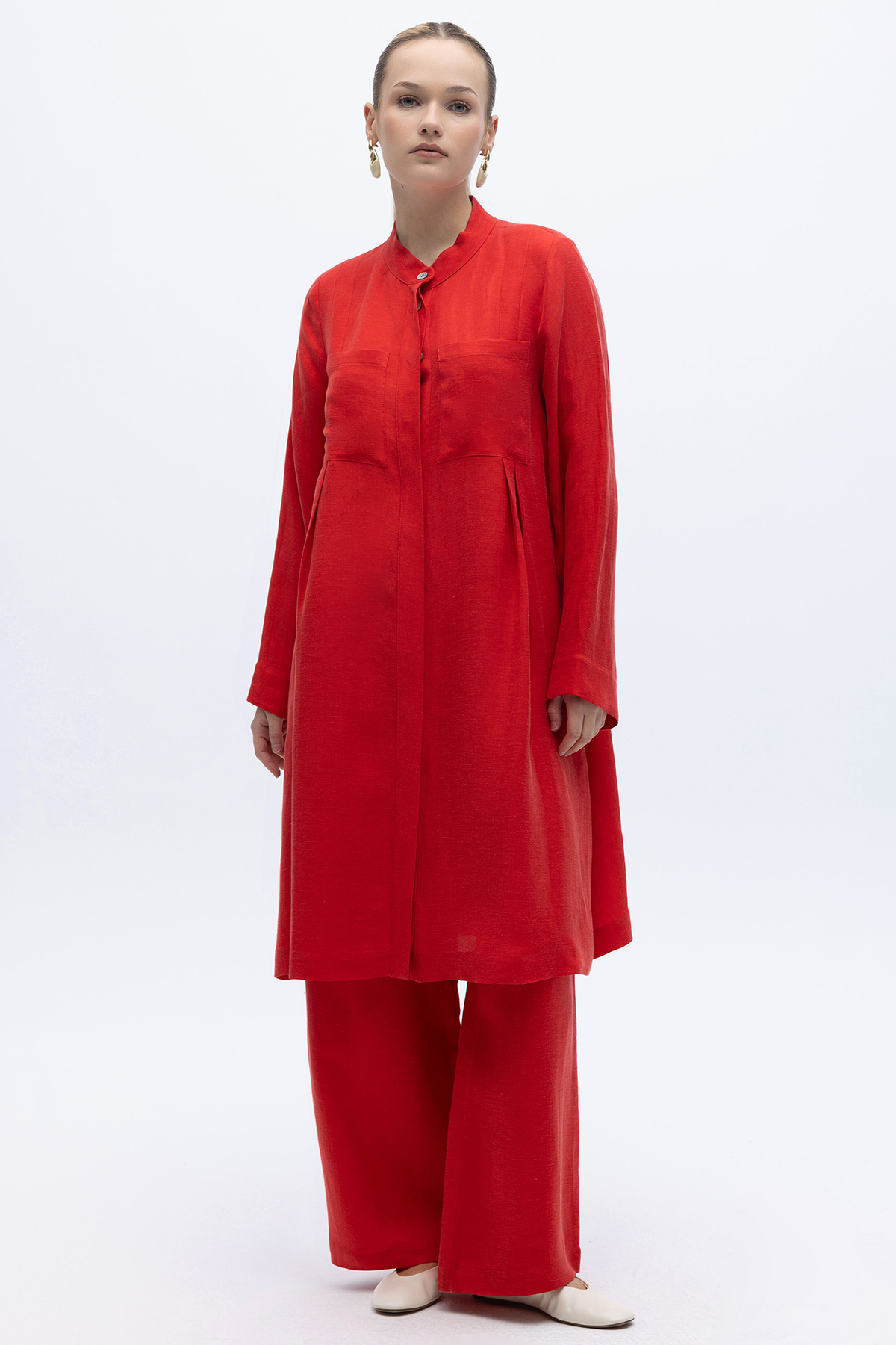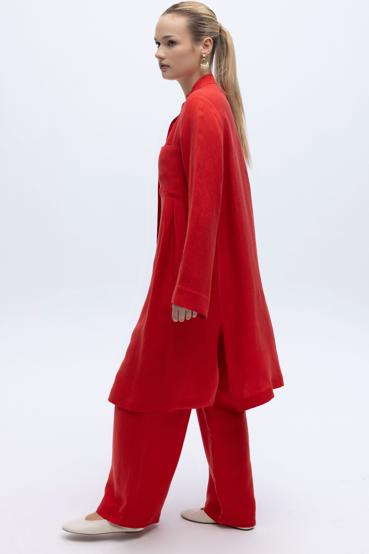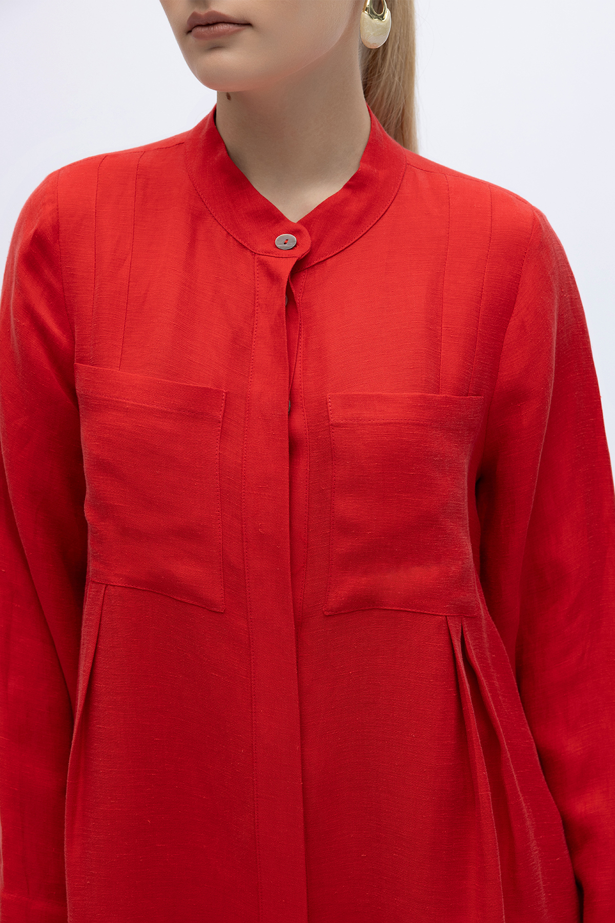 Hakim Yaka İpek Keten Gömlek Kırmızı