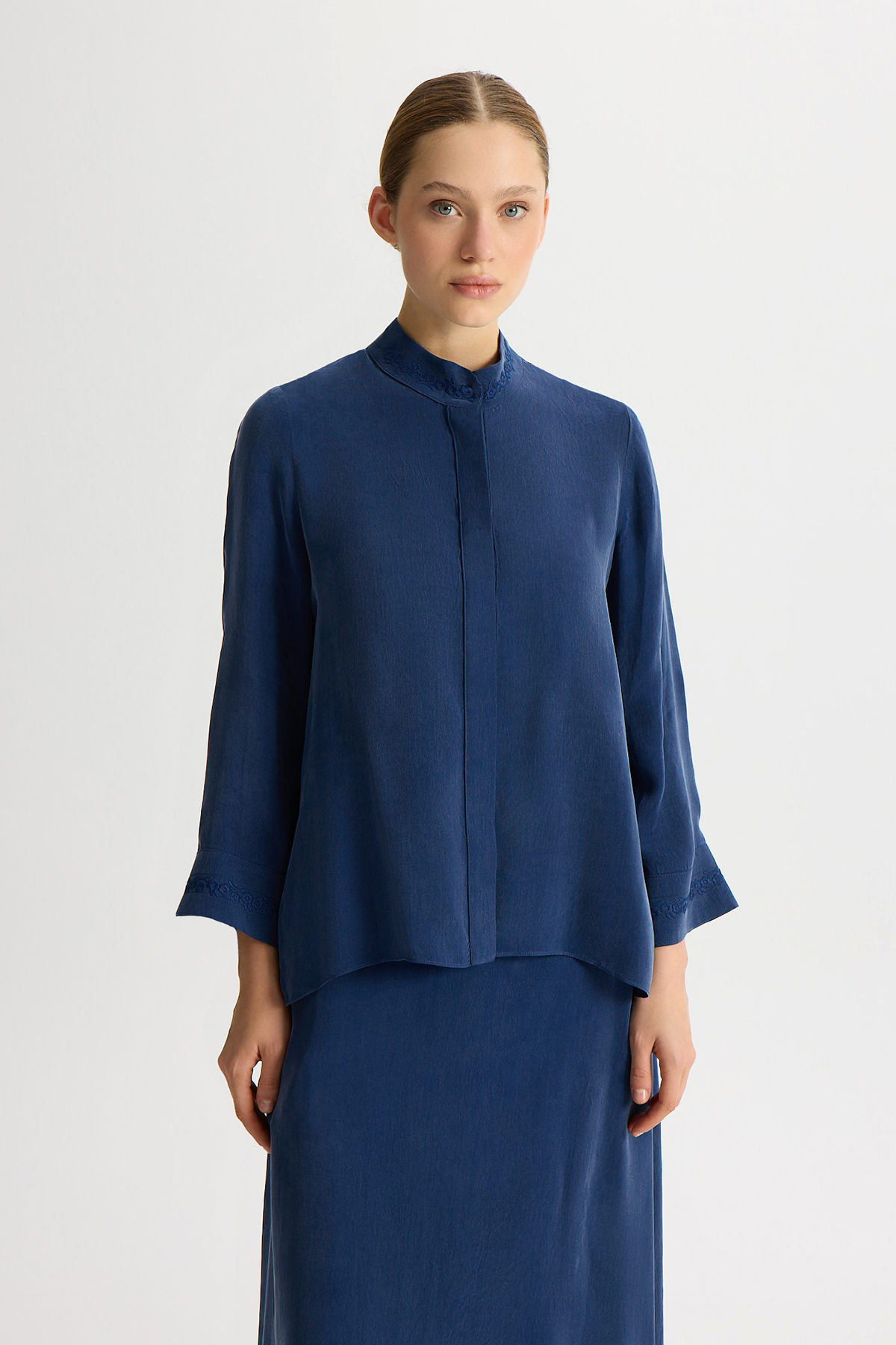 Embroidered Mandarin Collar Cupro Tunic