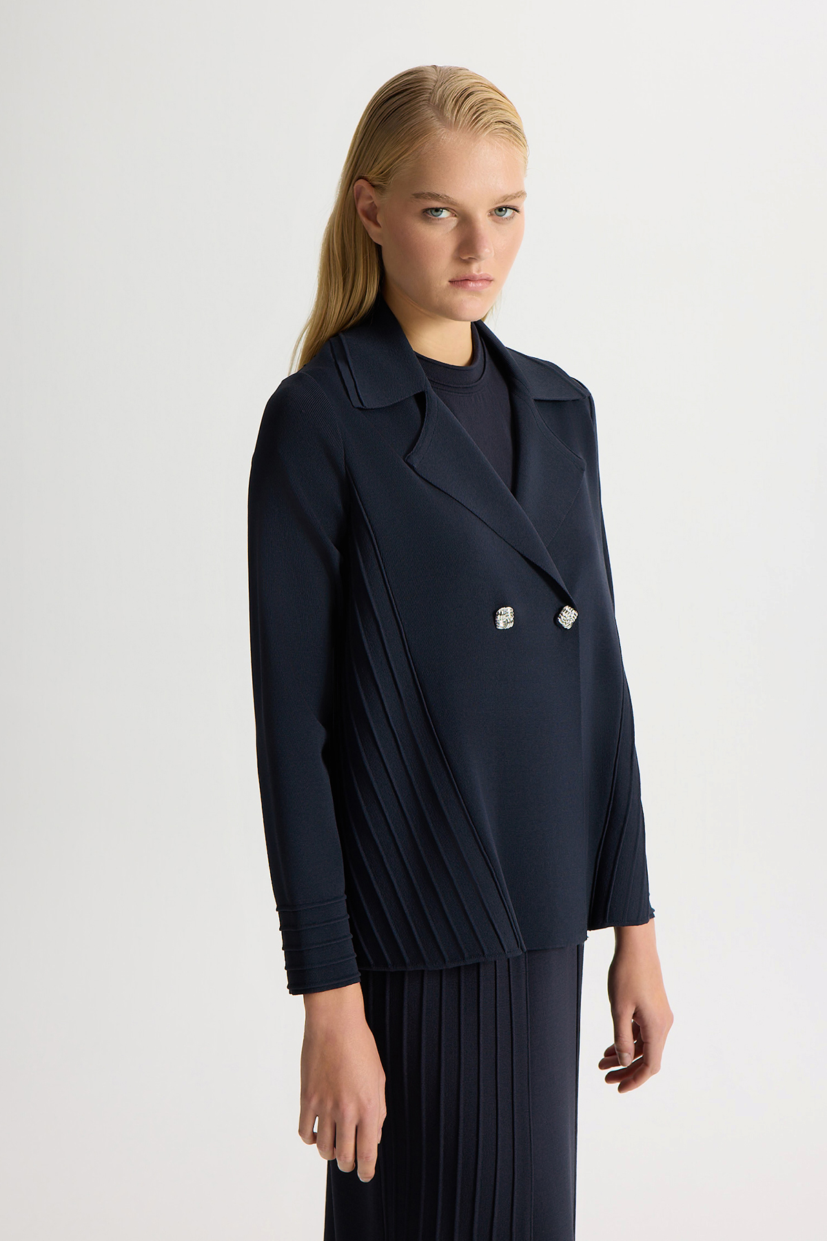 İki Düğmeli Bekletme Detaylı Triko Ceket Siyah