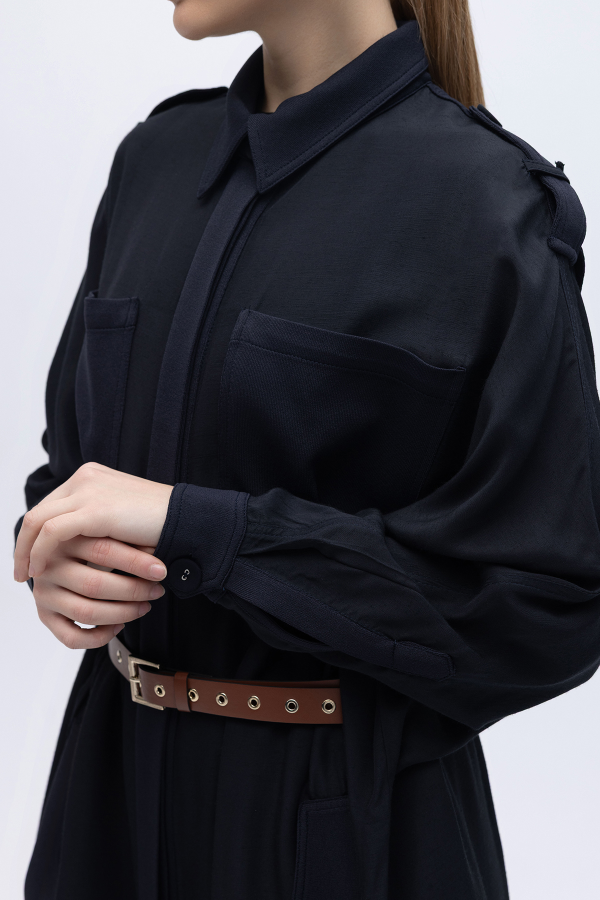Önü Nakışlı Hakim Yaka Ceket Mink