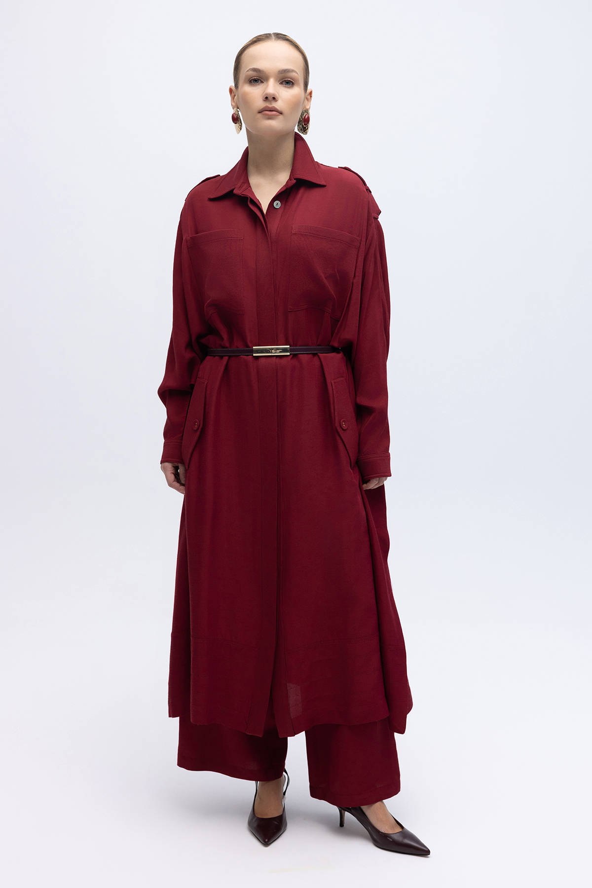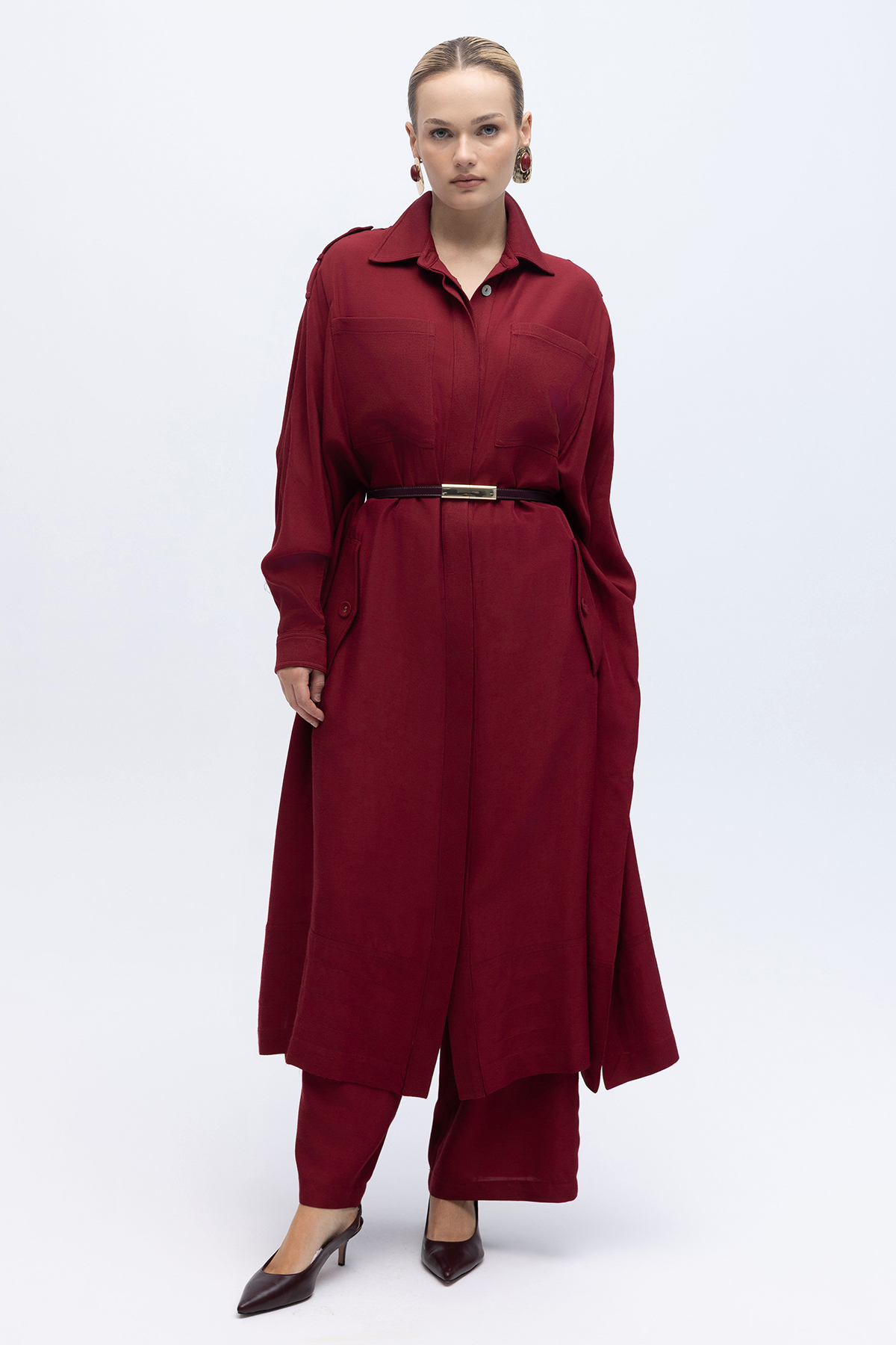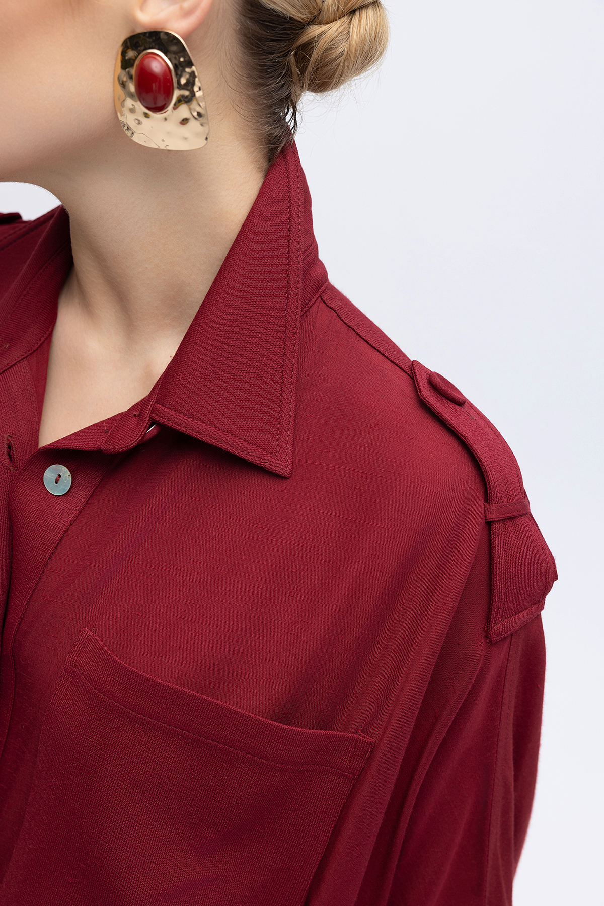 Pamuklu Kolsuz Yaka Gömlek Kahverengi